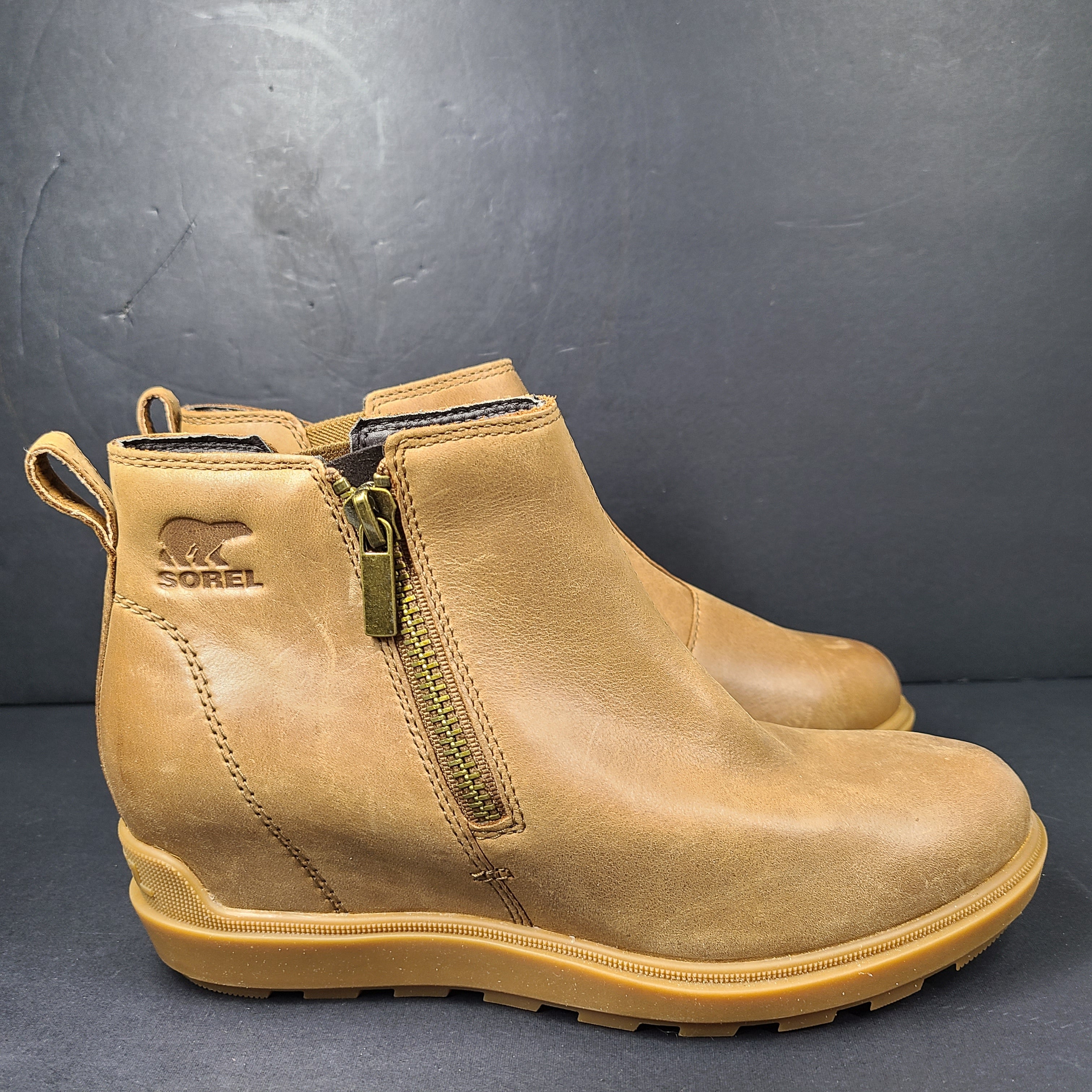 Sorel Women's Arctic Wedge Chelsea Boots Hidden Heel Tan Sz 7.5