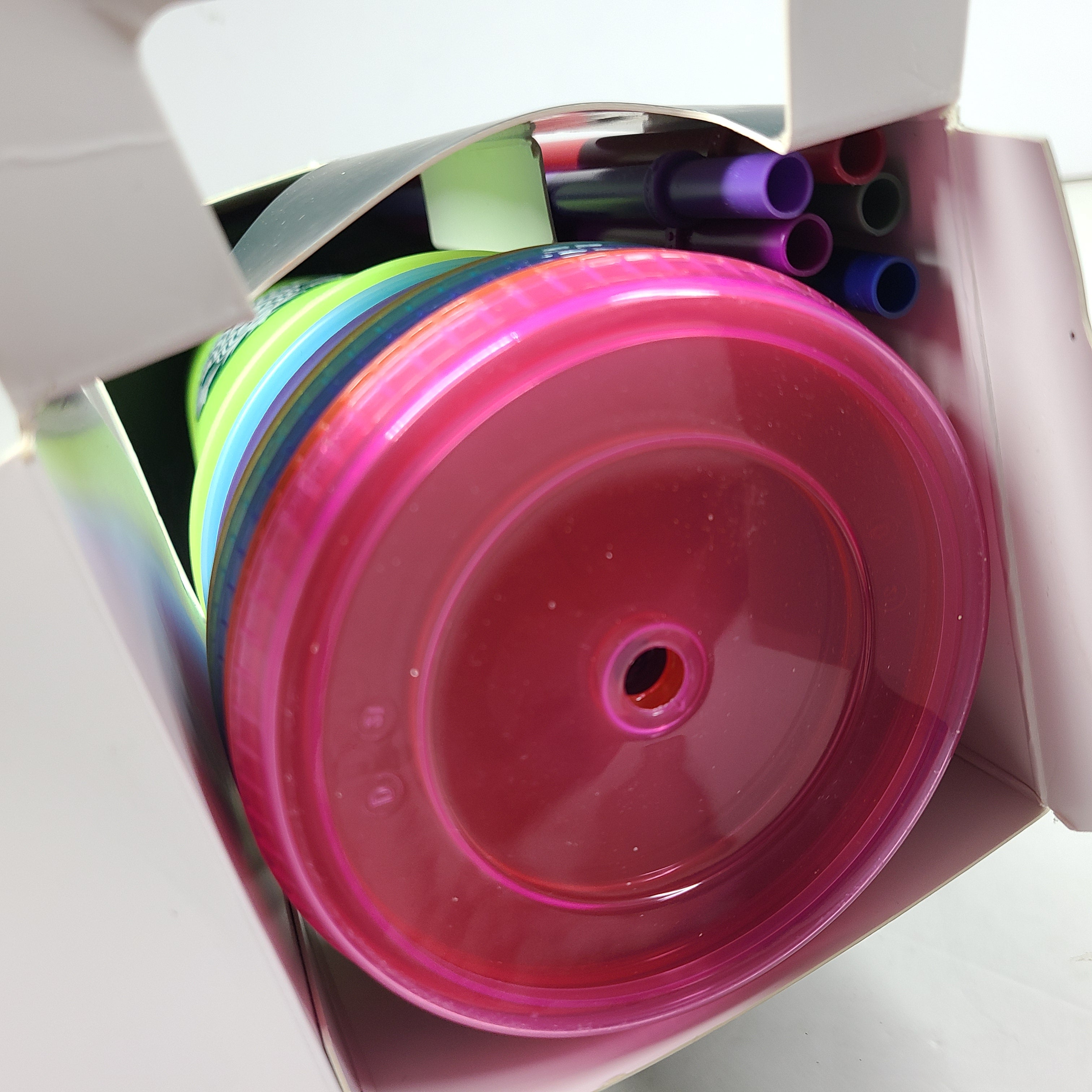 - Included dome lids and reusable straws for on-the-go use