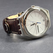 Swatch Irony Stainless Steel Watch White Dial Brown Leather Strap