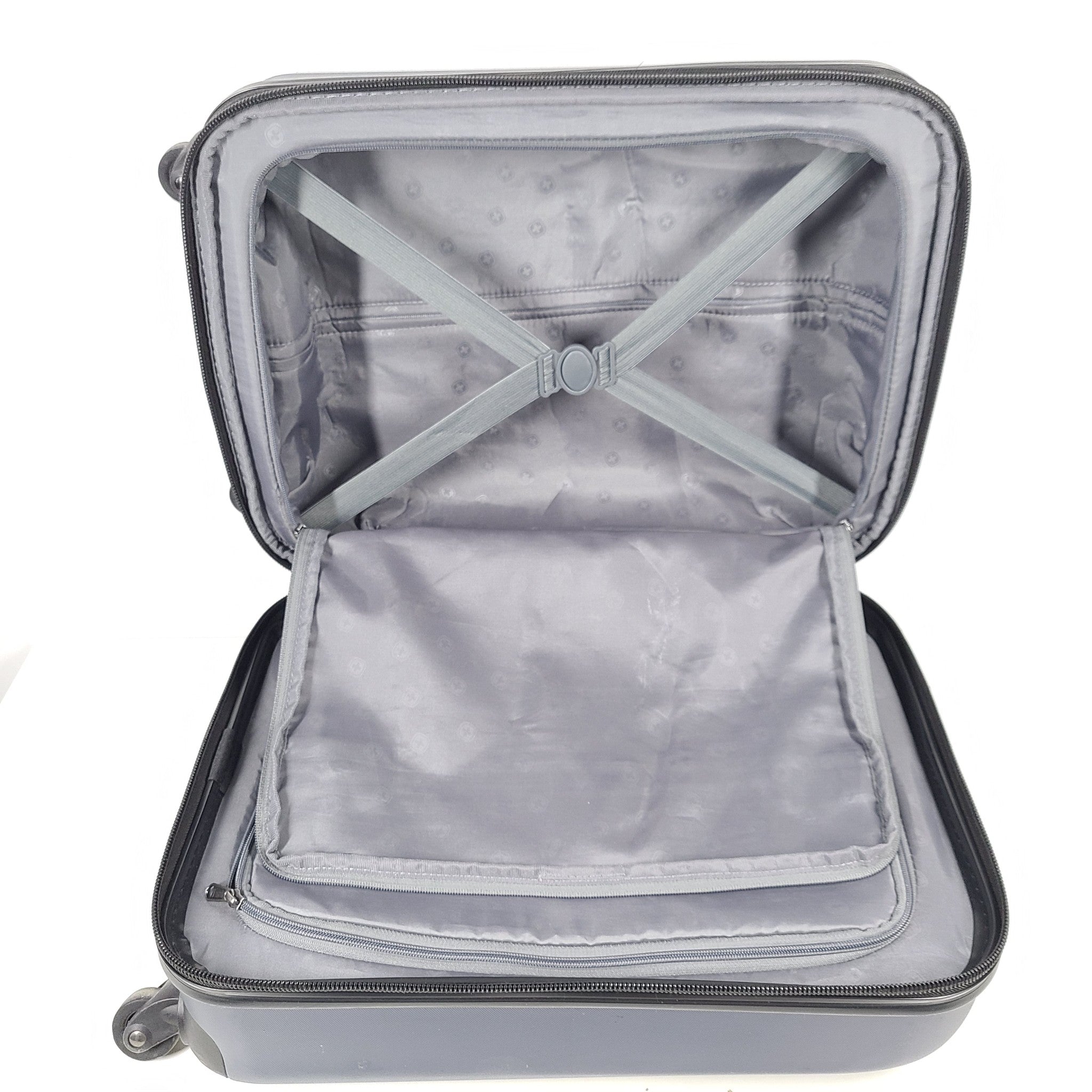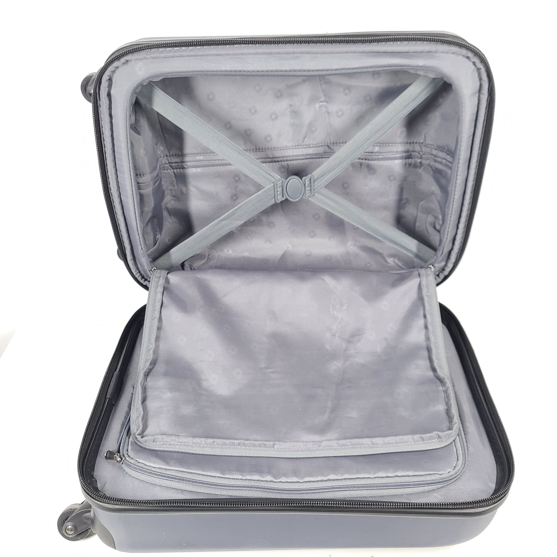 - Large split case interior with clothing tie-down straps