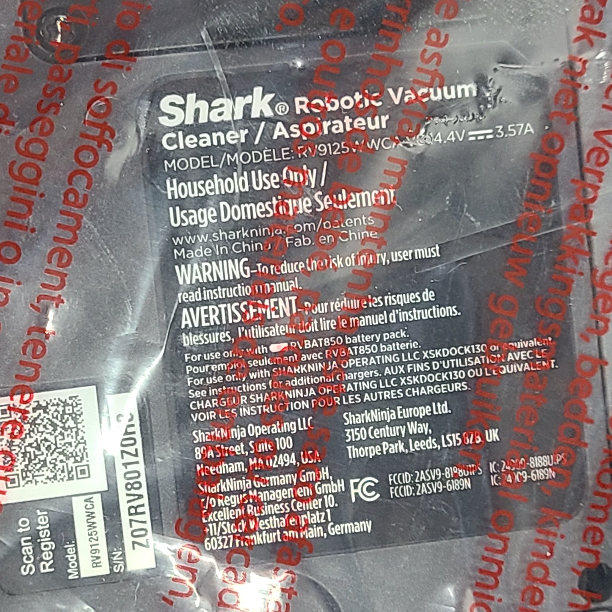 The Shark EZ Vacuuming Robot Self-Empty With Charger & Dock New RV9125