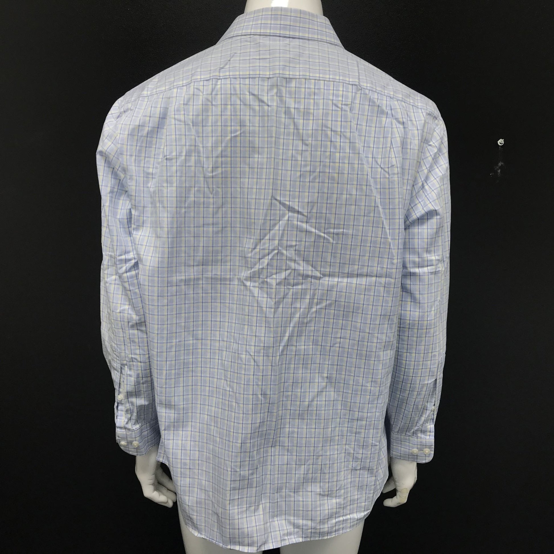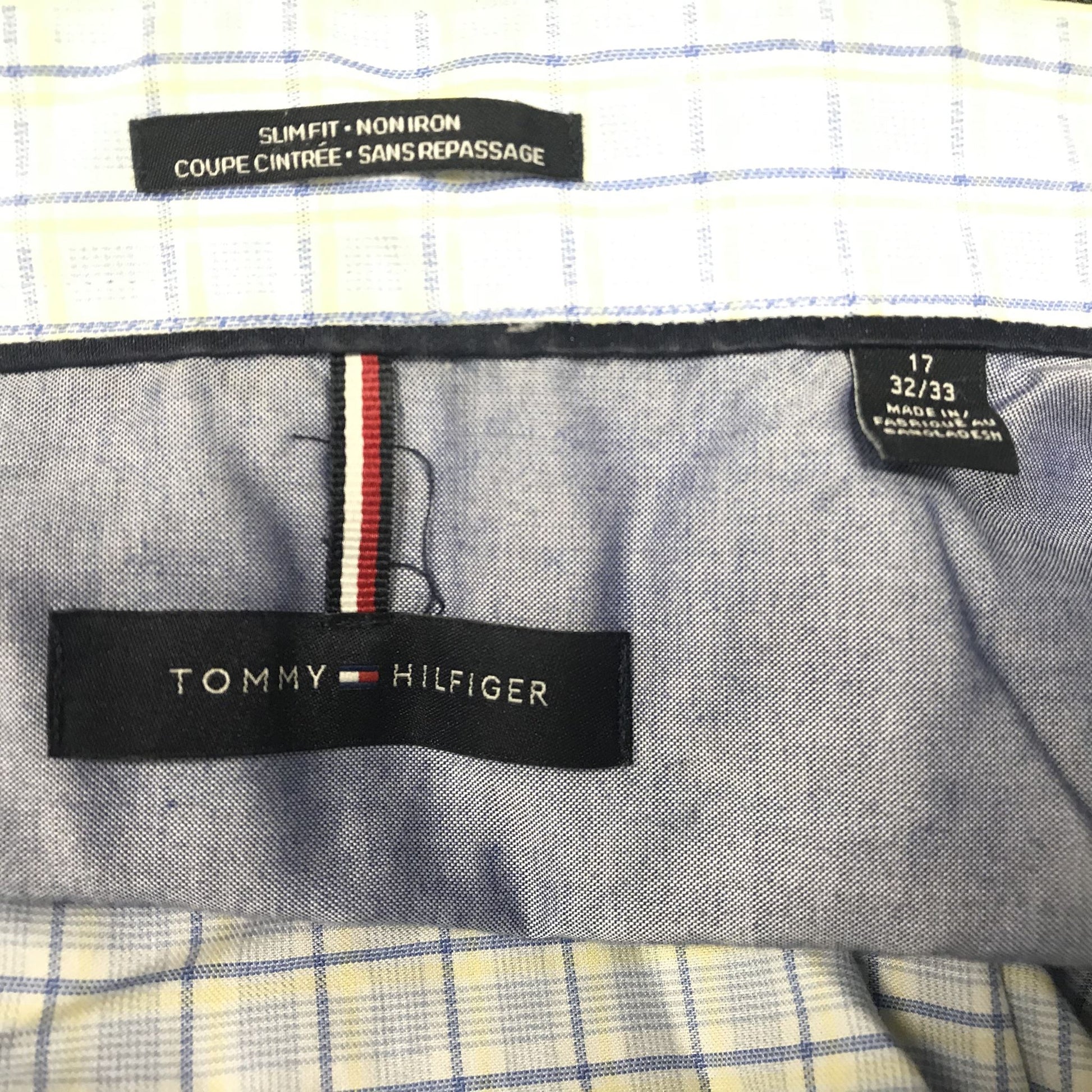 Tommy Hilfiger Men's Buttoned Dress Shirt Blue White Yellow Checks Sz 17