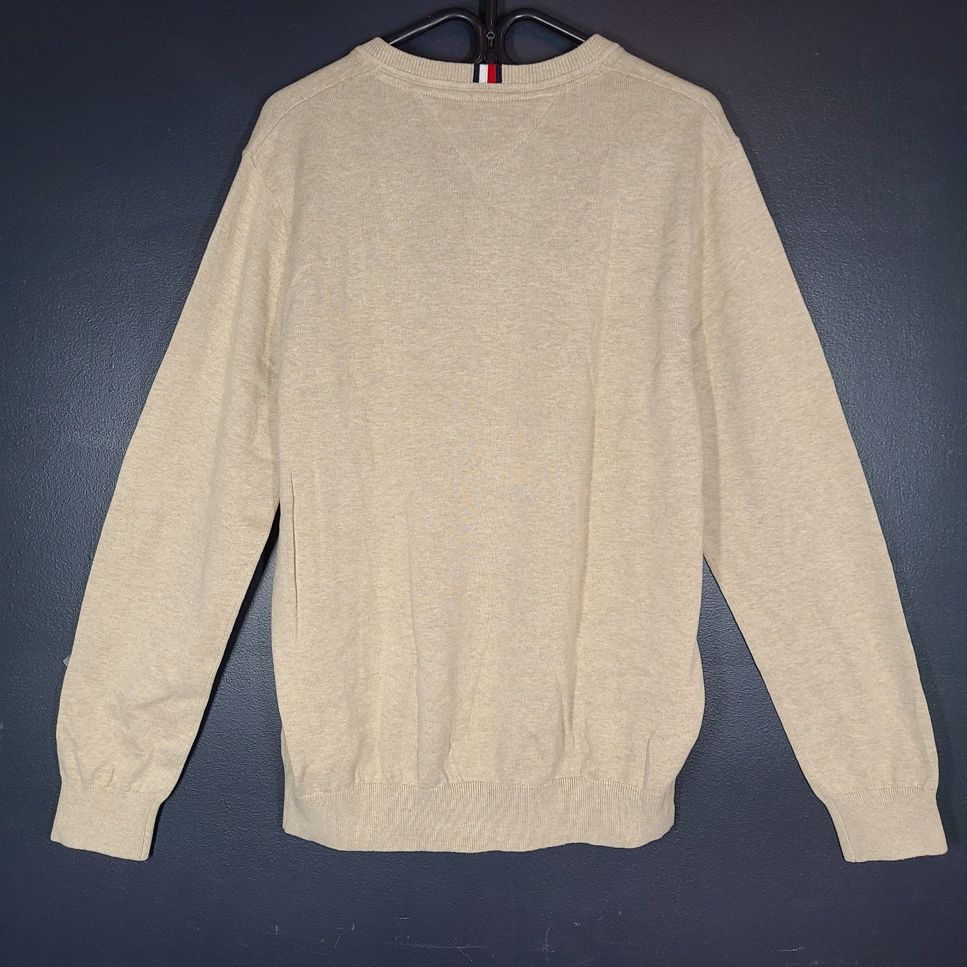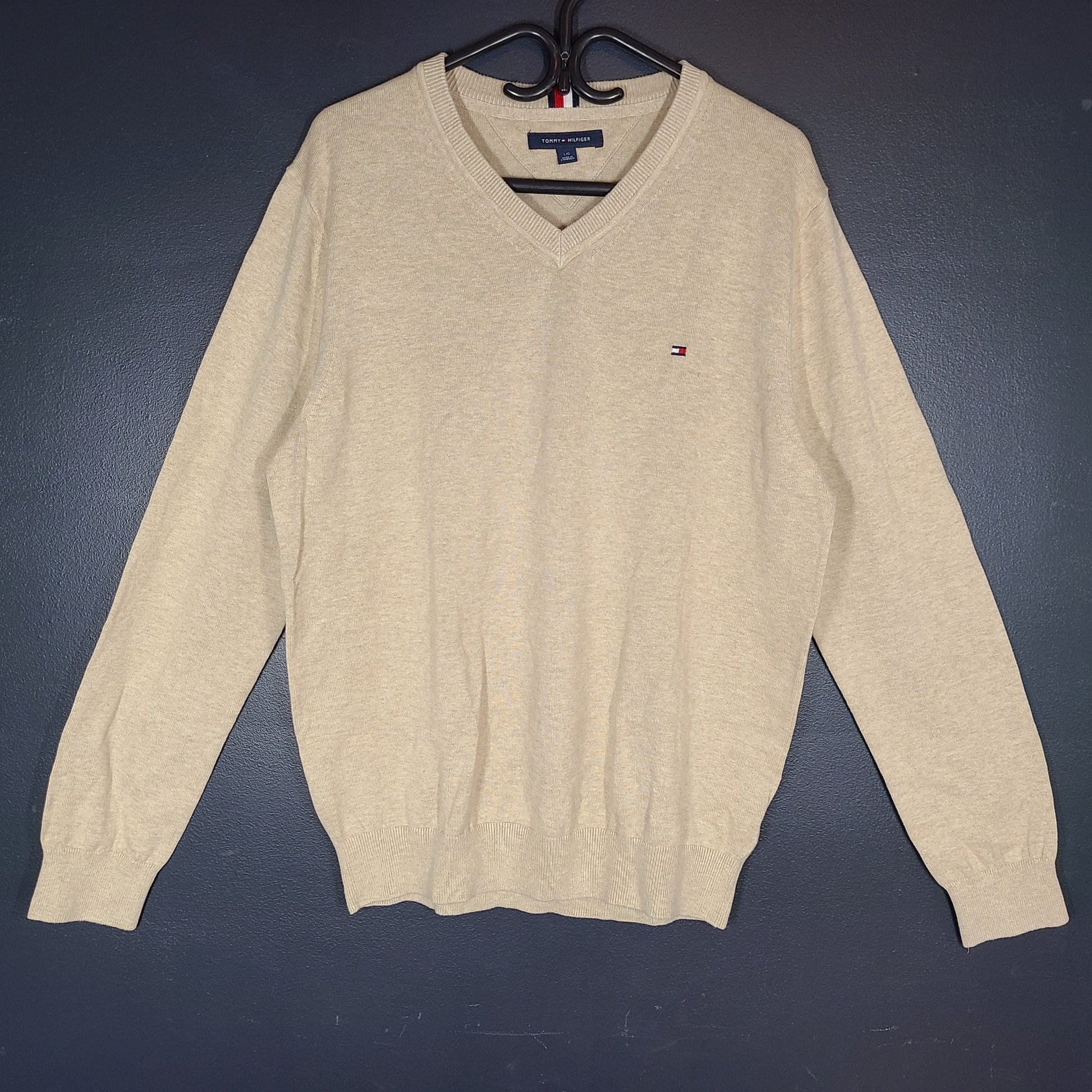 Tommy Hilfiger Men's Flag Logo V-Neck Sweater LS Shirt 78J8323 Beige Tan Sz L