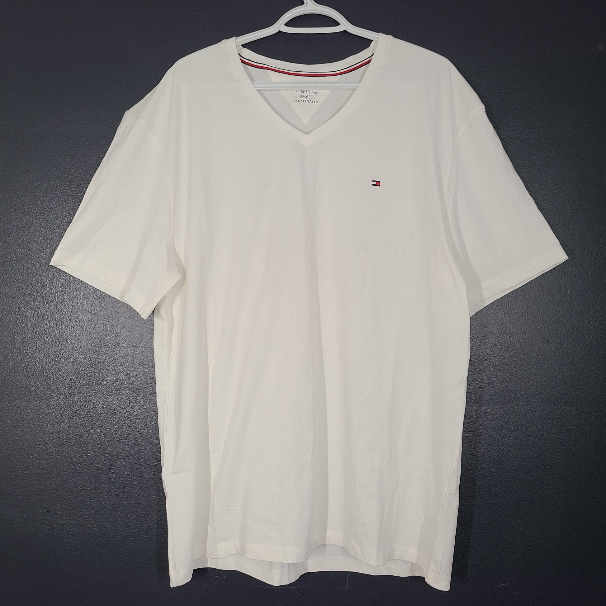 Tommy Hilfiger Men's Slim Fit Solid V-Neck T-Shirt 78J7087 Basic White Sz XXL
