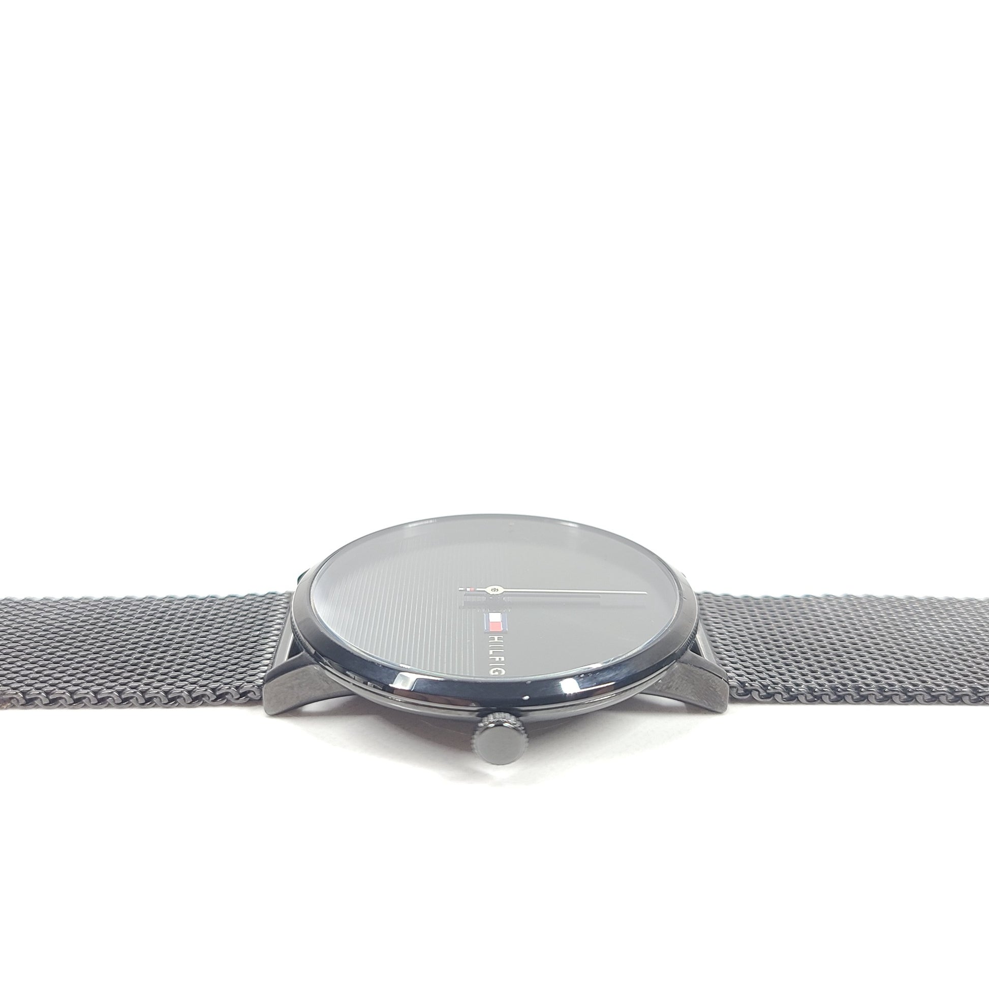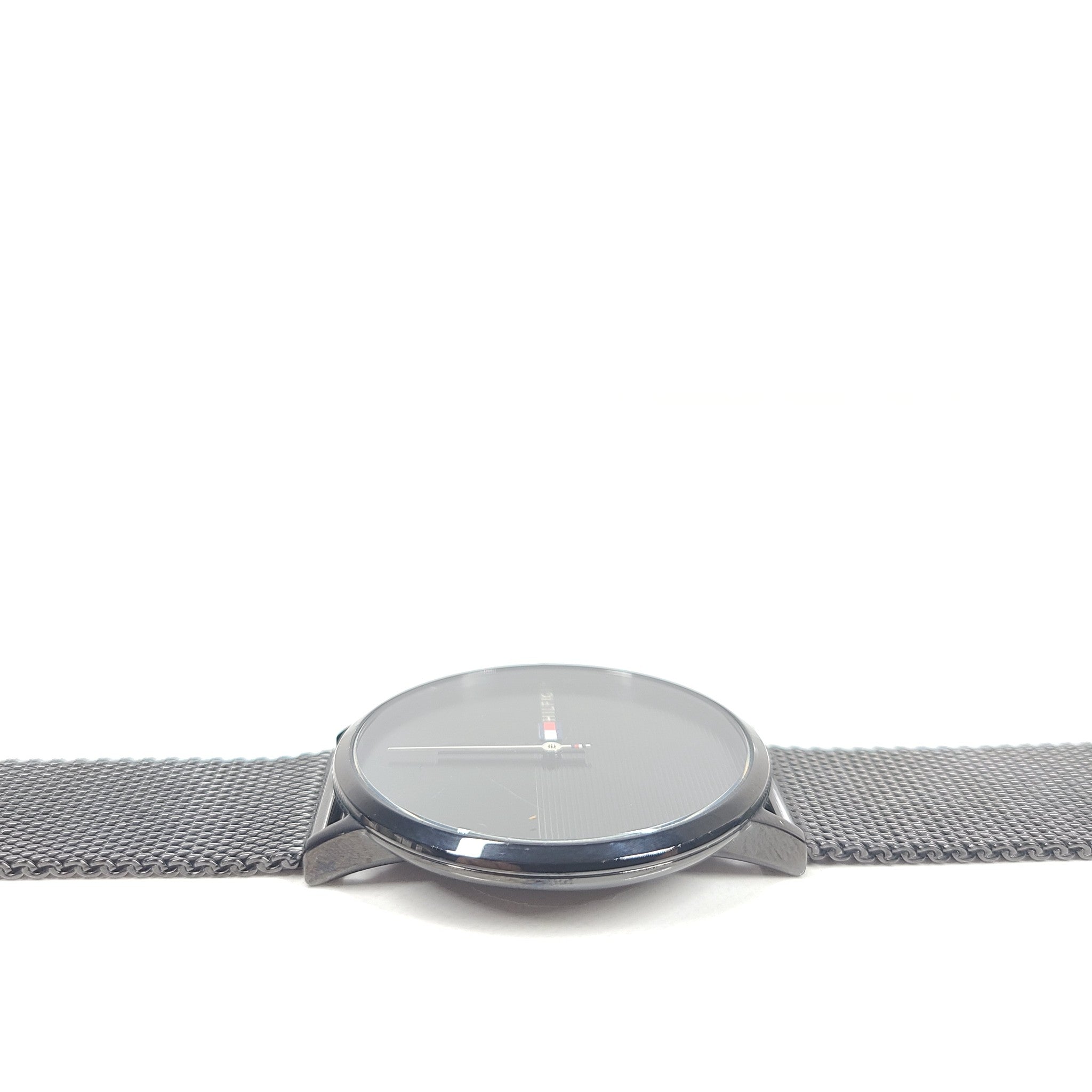 Well-suited for today's modern man, this casual watch offers natural, understated elegance. Crafted of solid Stainless Steel, it features a 40mm case with Stainless Steel, Black Milanese mesh bracelet, minimalist dial and fine design details, accented by the Tommy Hilfiger flag Logo at 3 o'clock and iconic red/White/Blue accents on the bracelet. Water resistant to 3 ATM/30 meters