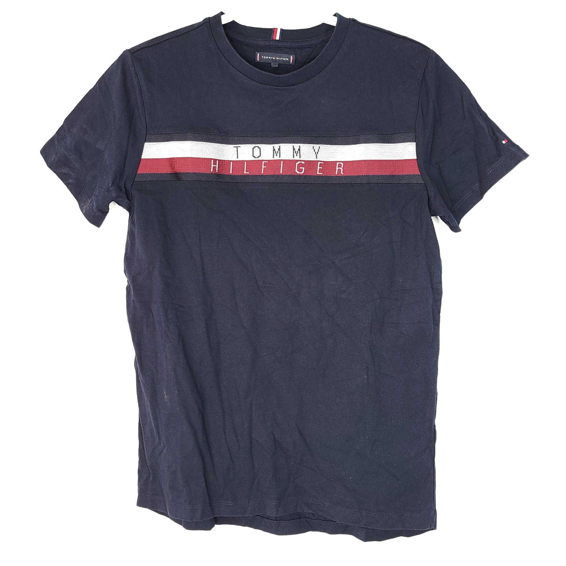 Tommy Hilfiger Youth Teen Signature Tape Short Sleeve T-Shirt Navy Blue Sz 16 Y