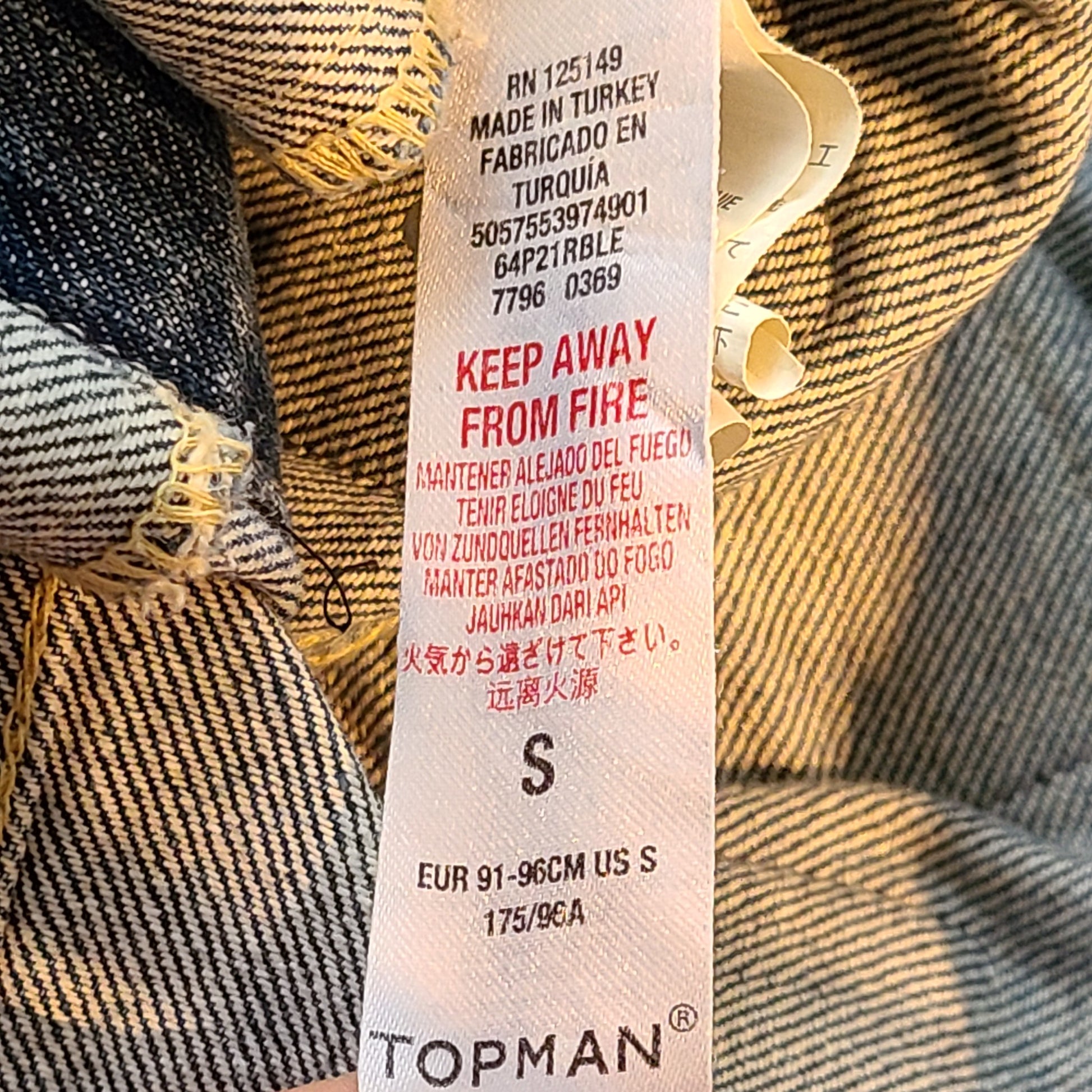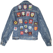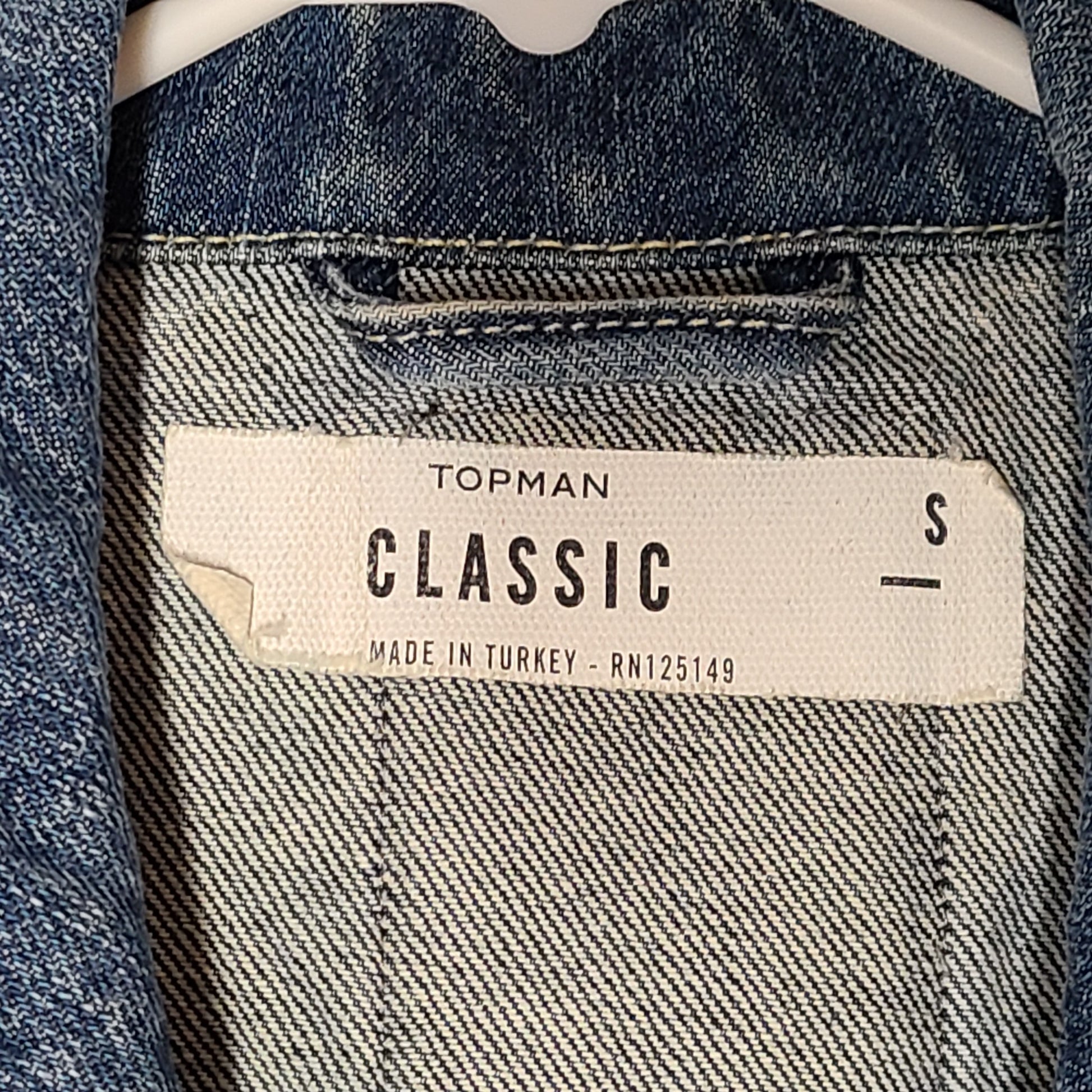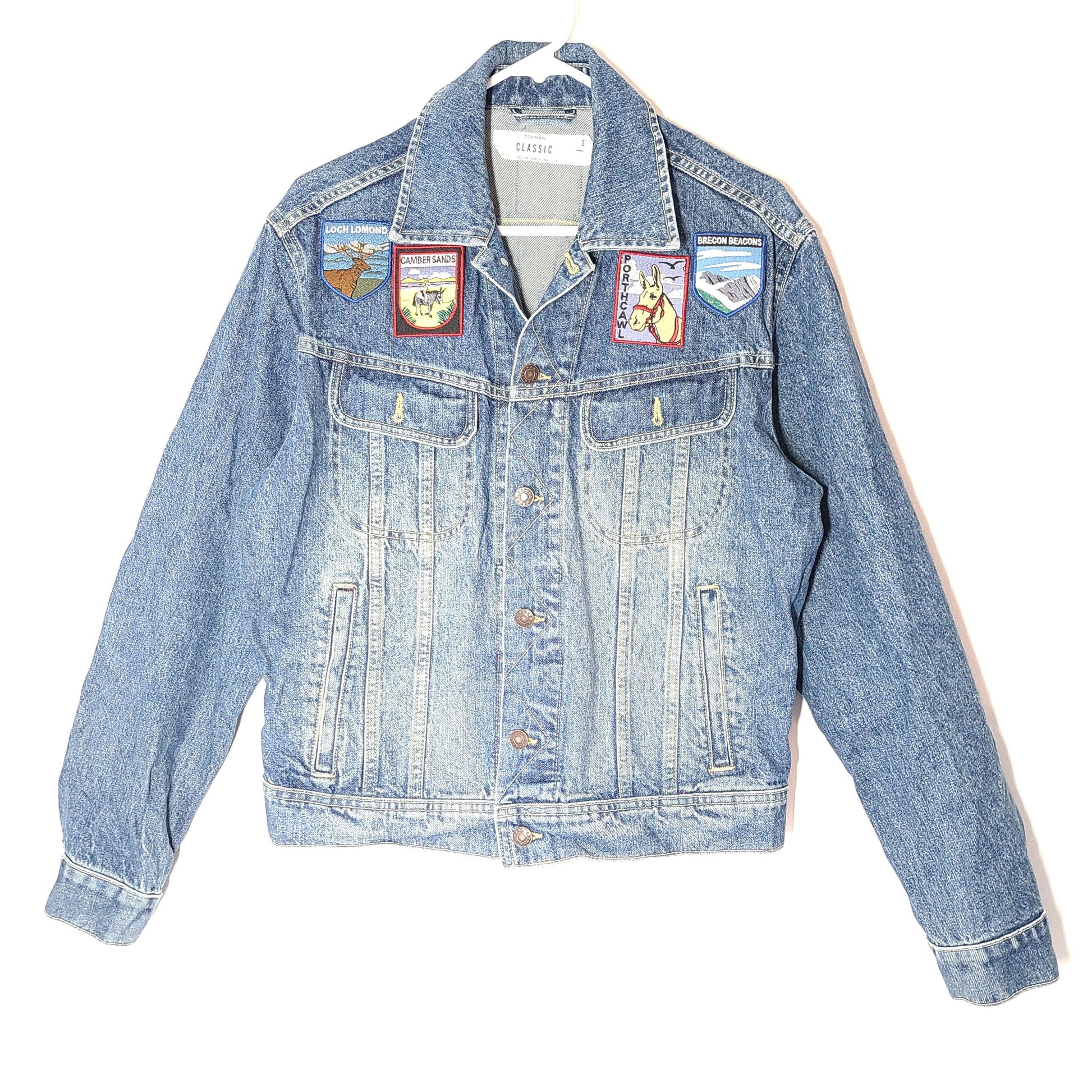 Topman Men's Denim Jacket UK GB Patches Cotton Button Closure Blue Sz S