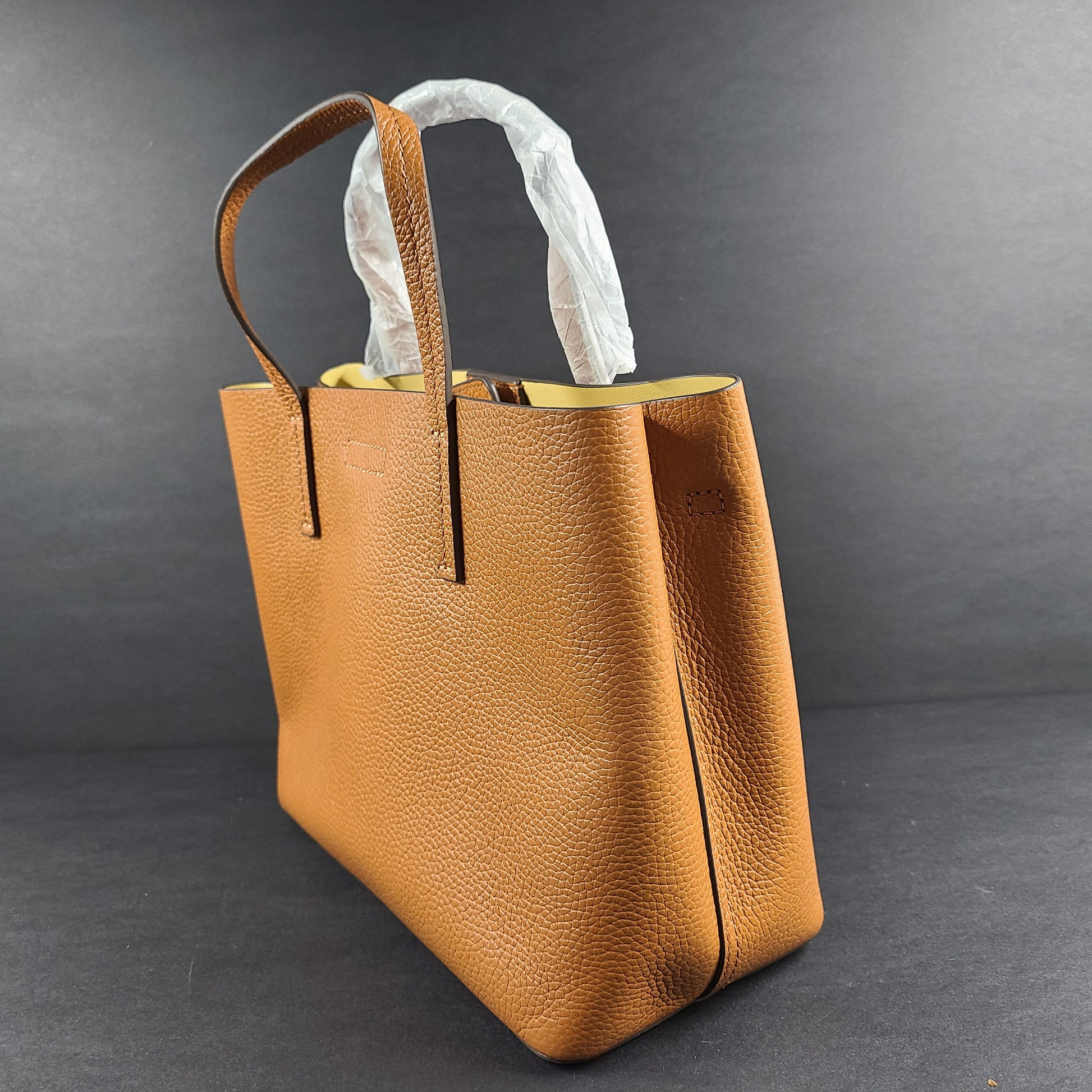 Handles: Leather double handles and adjustable and removable crossbody strap.