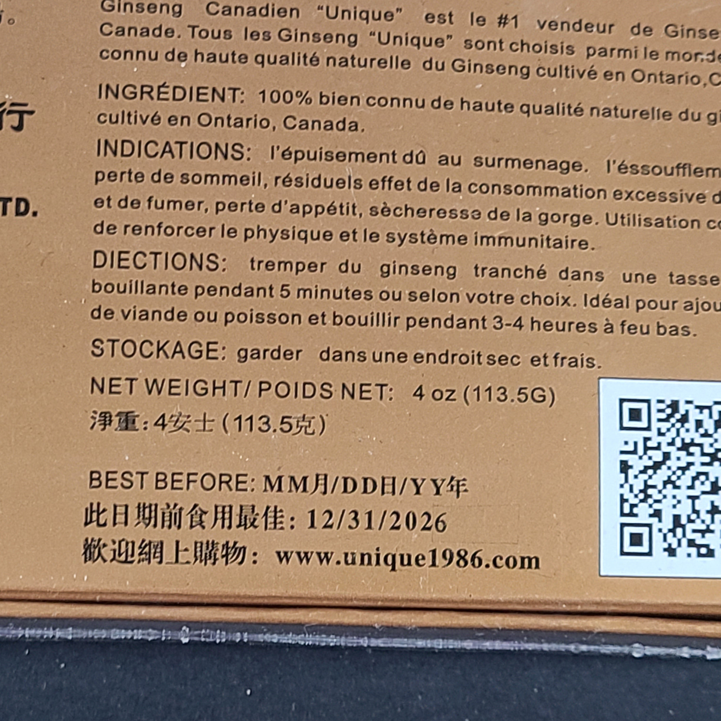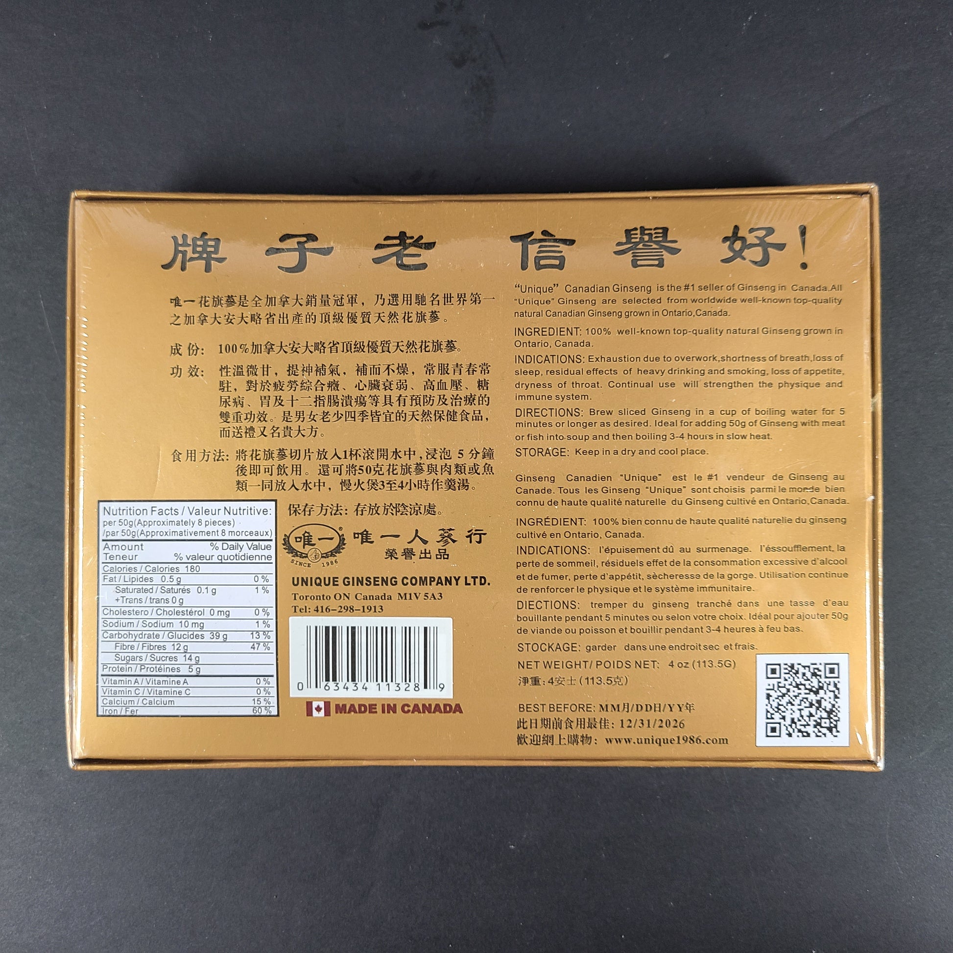 Includes: 4 oz. Ginseng in sealed Gift Box.