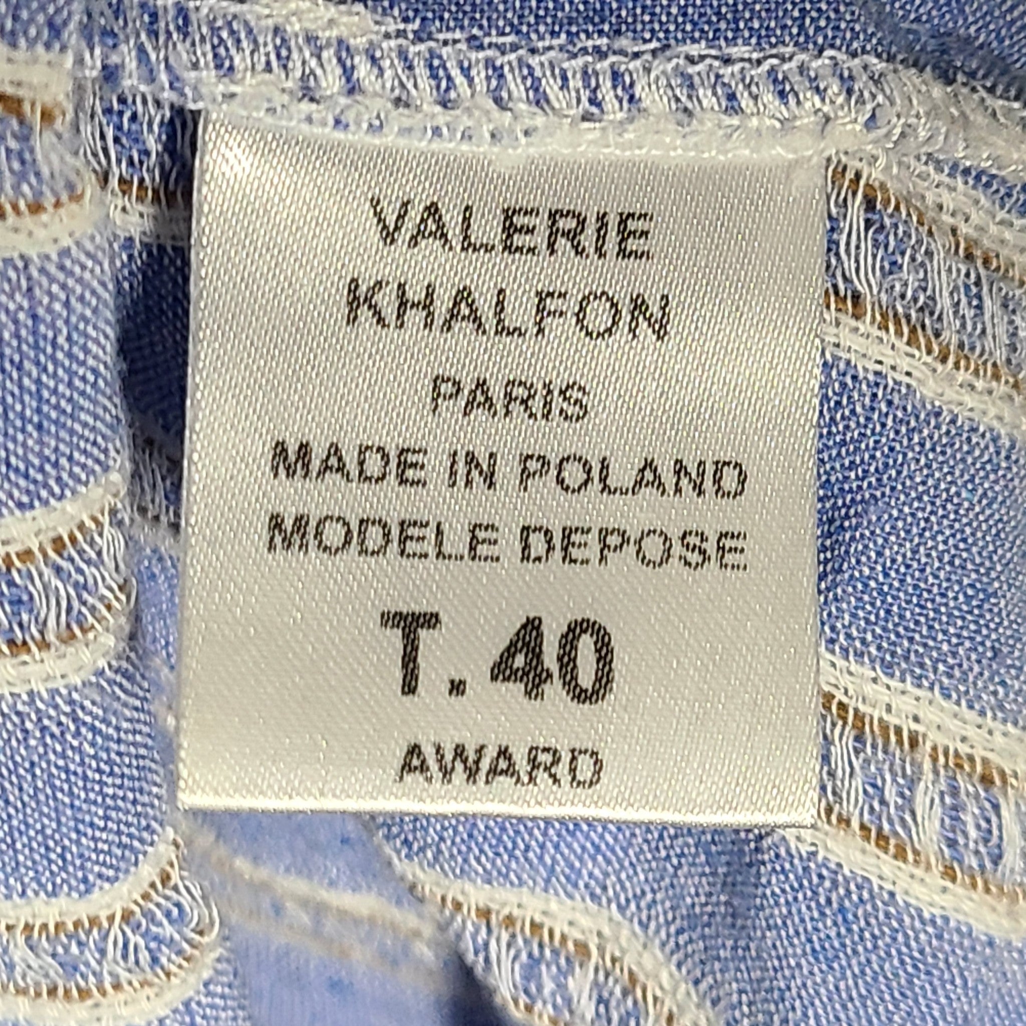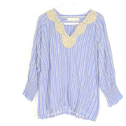 Valerie Khalfon Paris Designer Tunic with Lace Striped Blue Sz 8