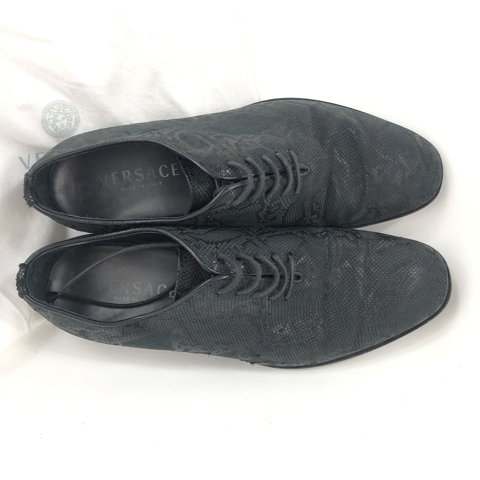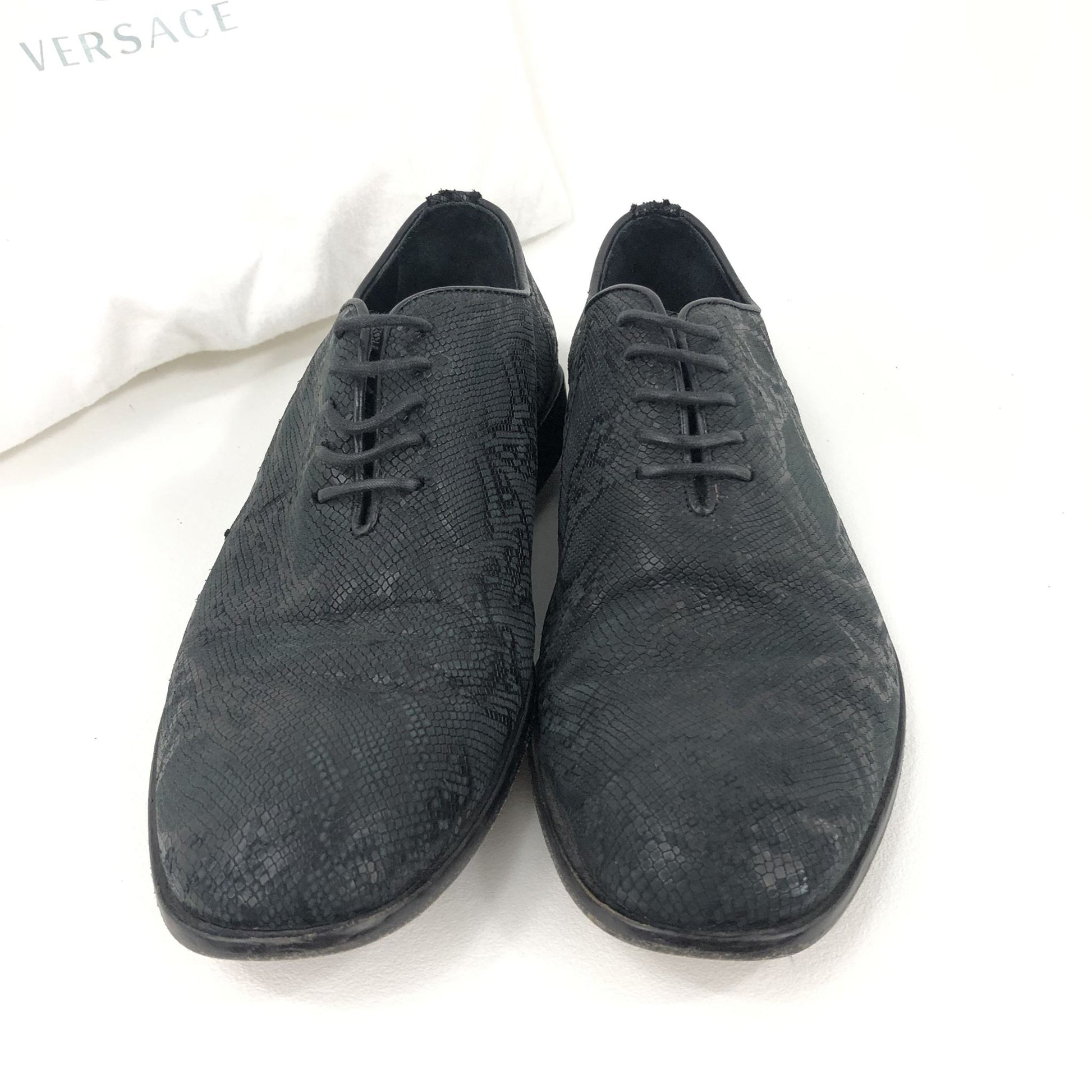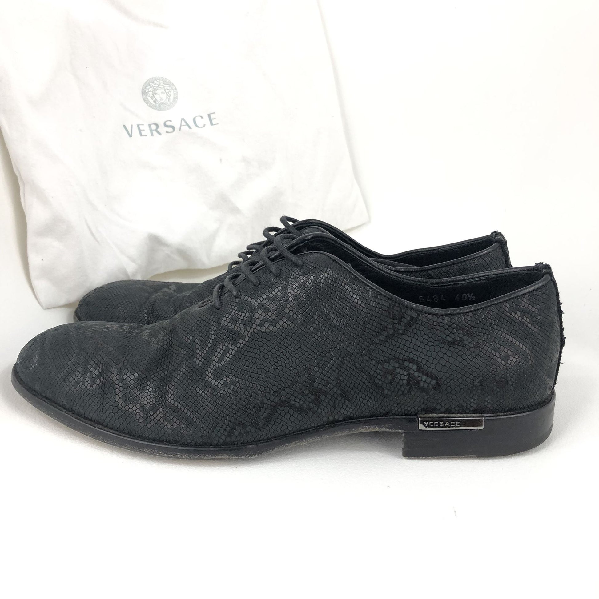 Versace Barocco Python Embossed Men's Oxford Shoes Black Sz 40.5 US7.5