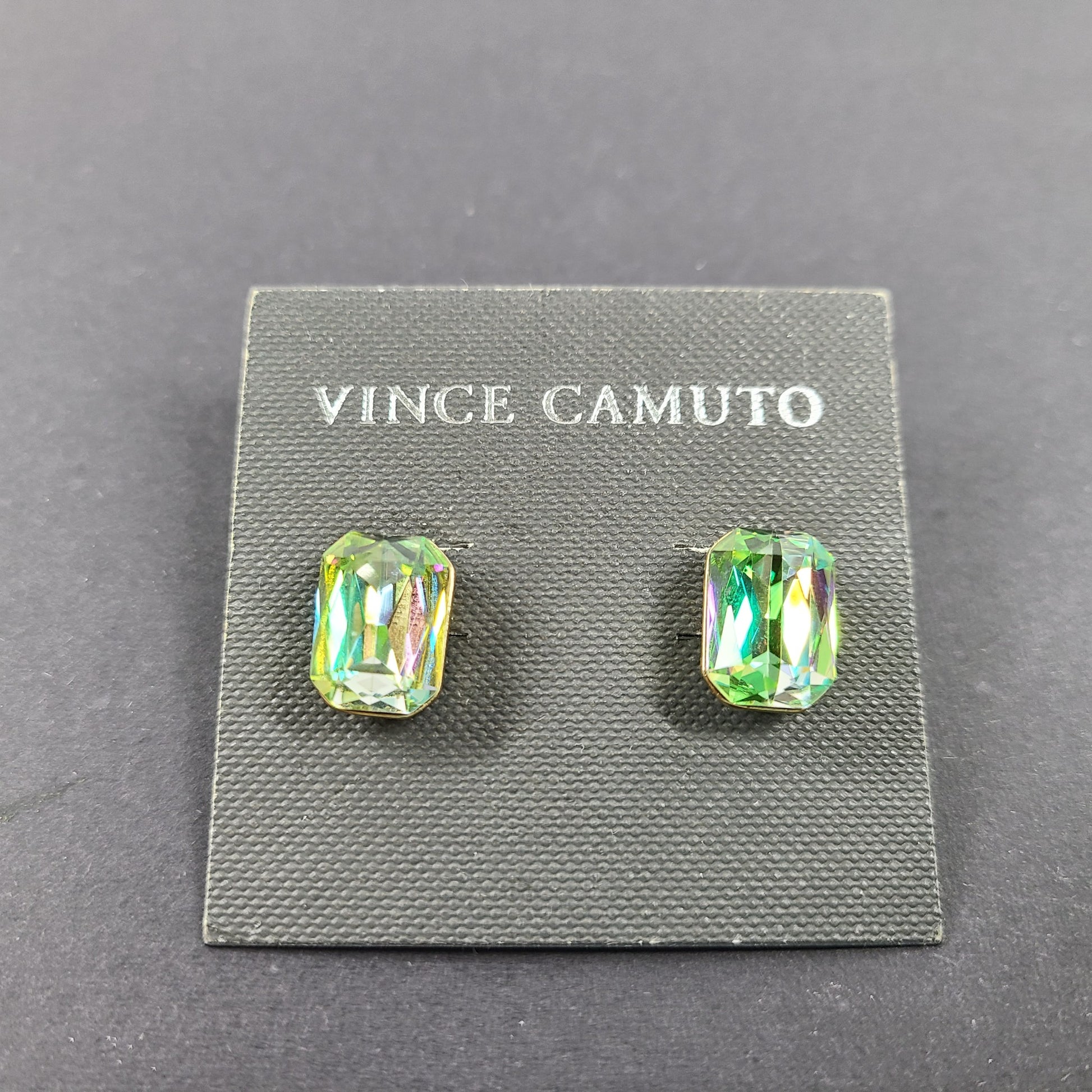 Vince Camuto Large Rectangle Crystal Stud Earrings Green Faceted