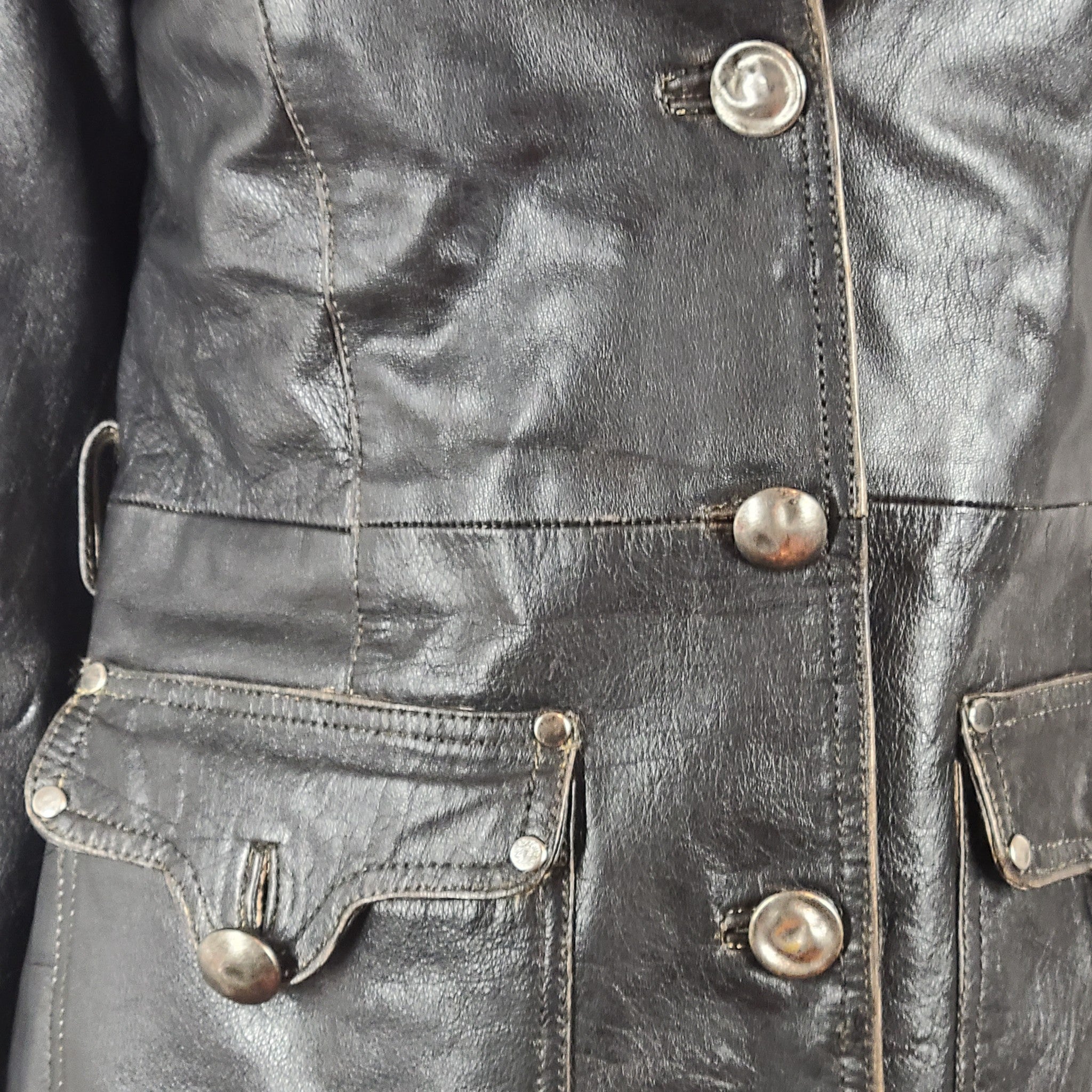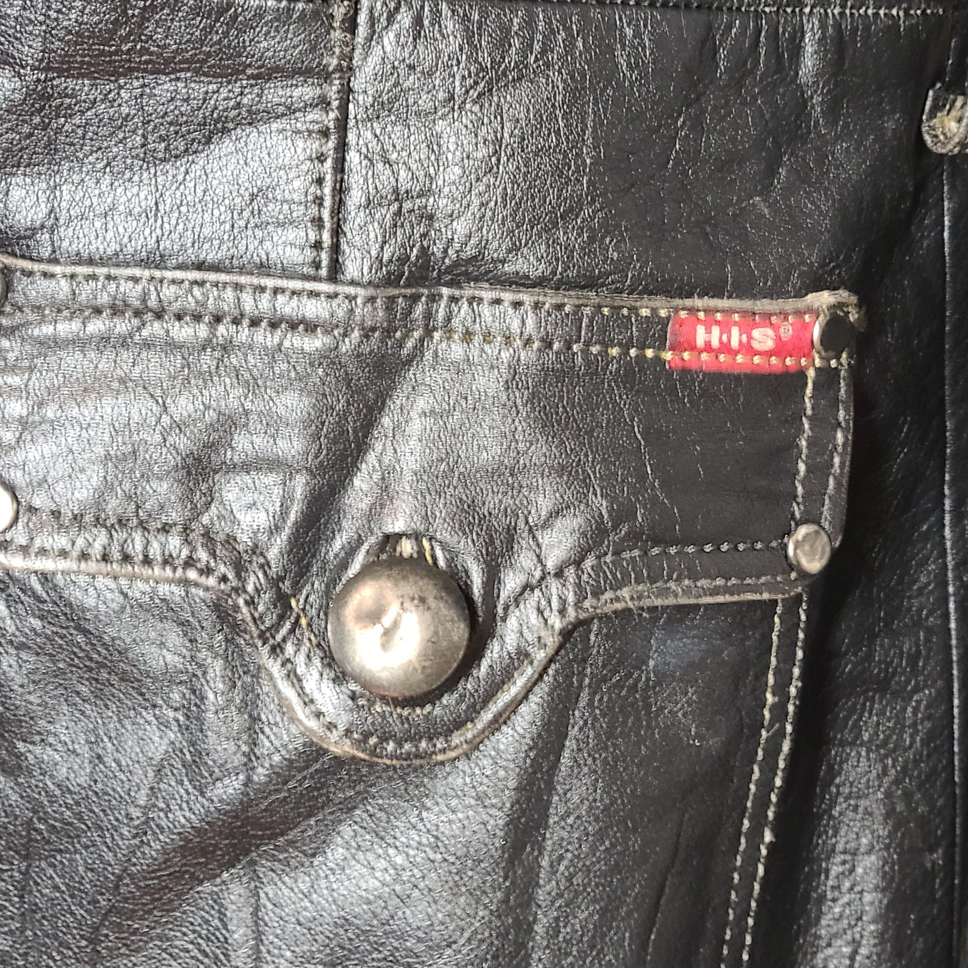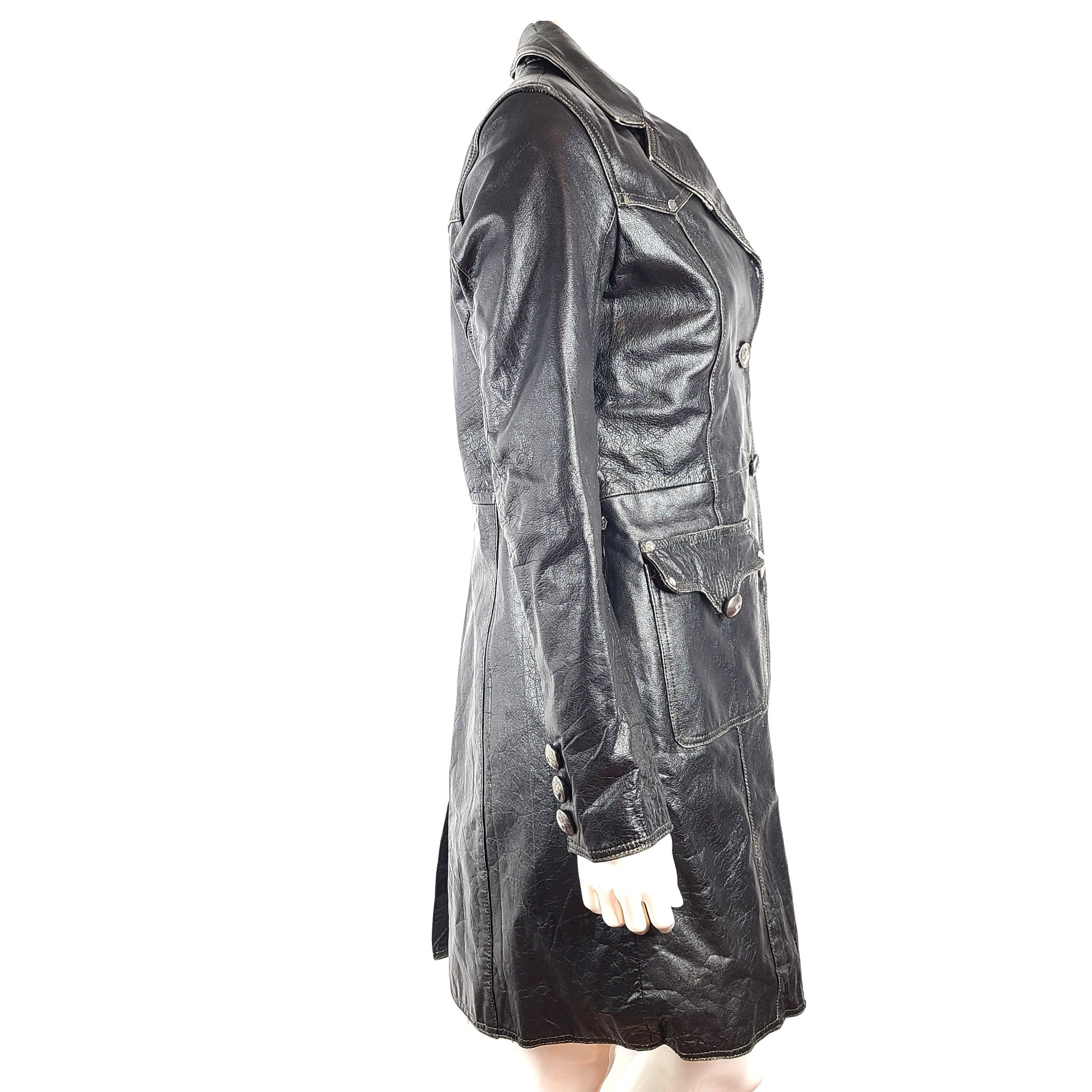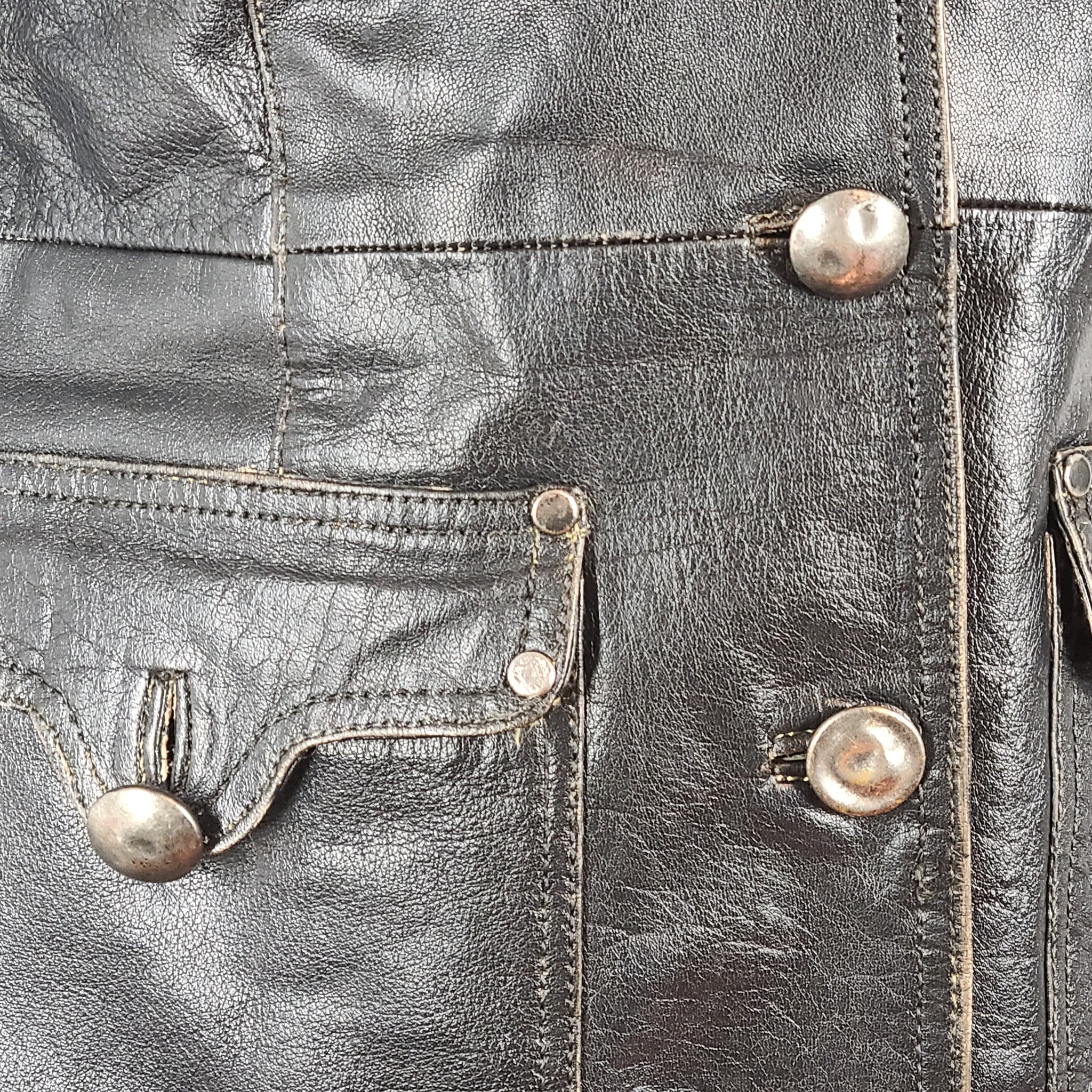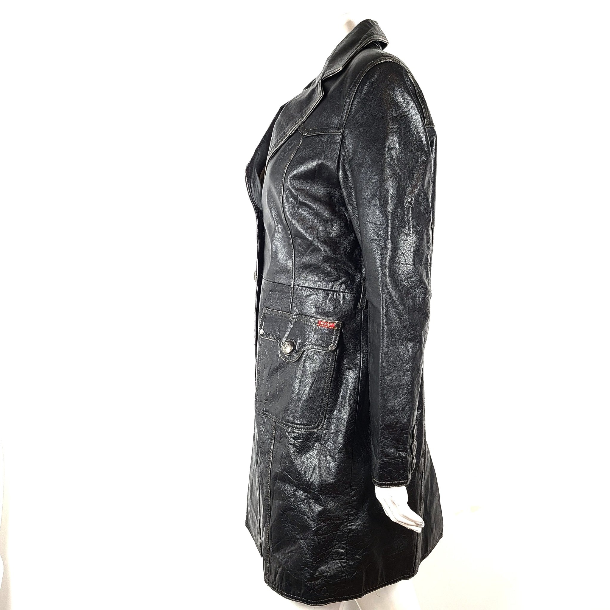 Vintage H.I.S. Jeans Women's Leather Coat Jacket Black Sz S
