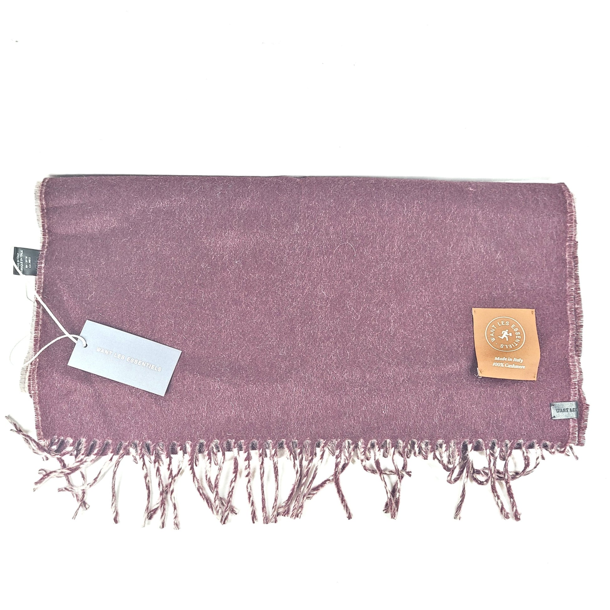 WANT Les Essentiels 100% Cashmere Scarf Fringed Burgundy/Beige Made in Italy