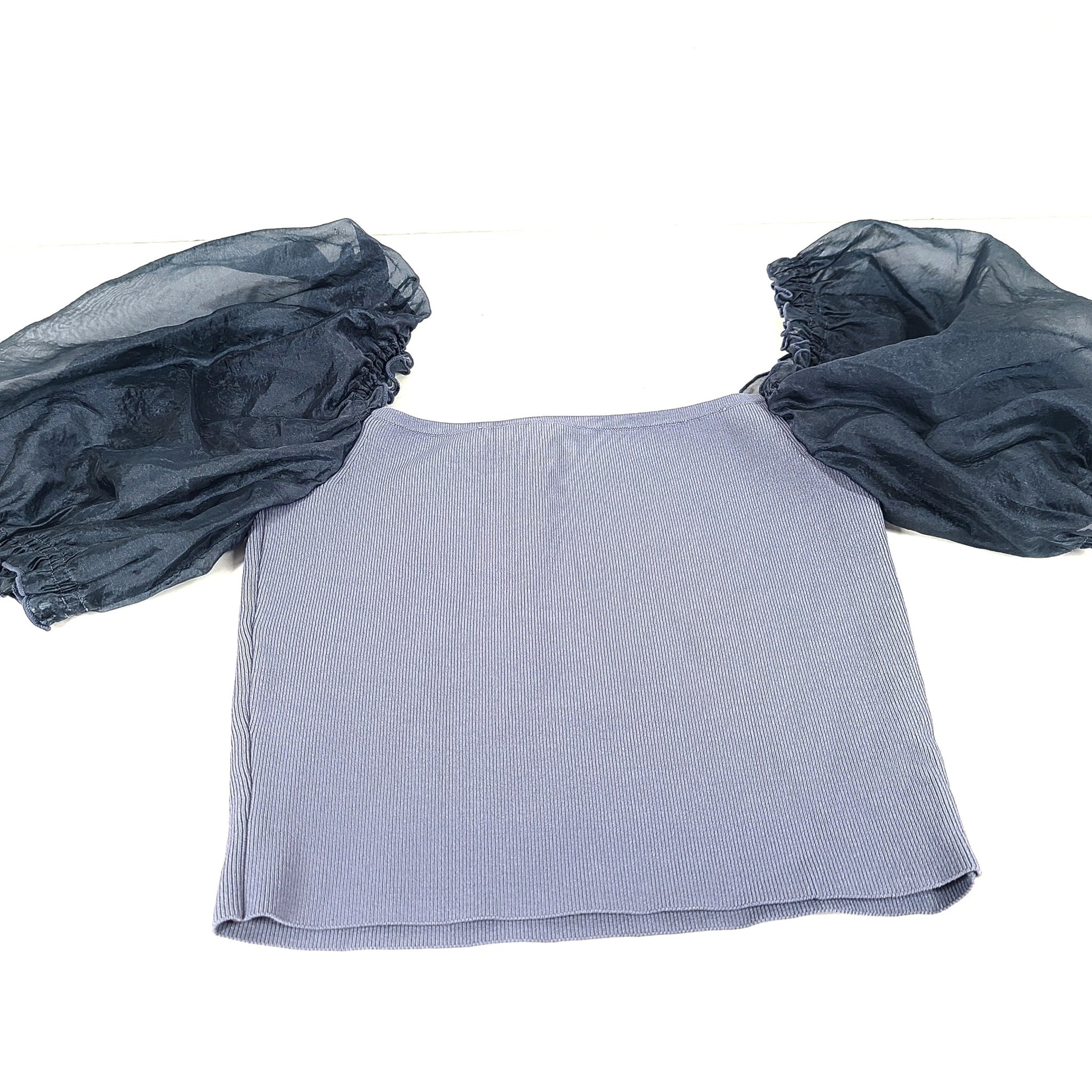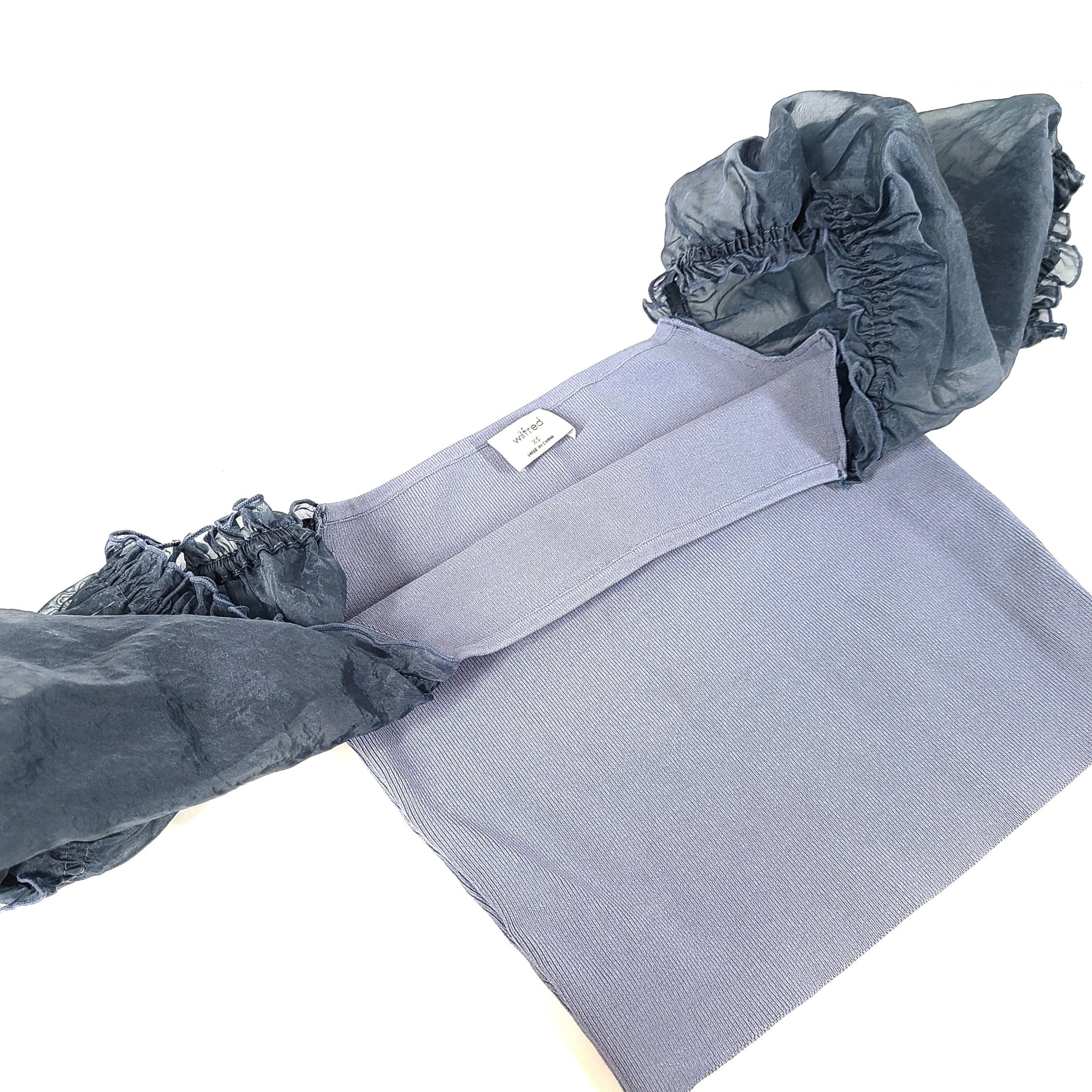 Wilfred Women's Organza Puff Sleeve Blouse Cropped Top Shirt Square Neck Blue XS