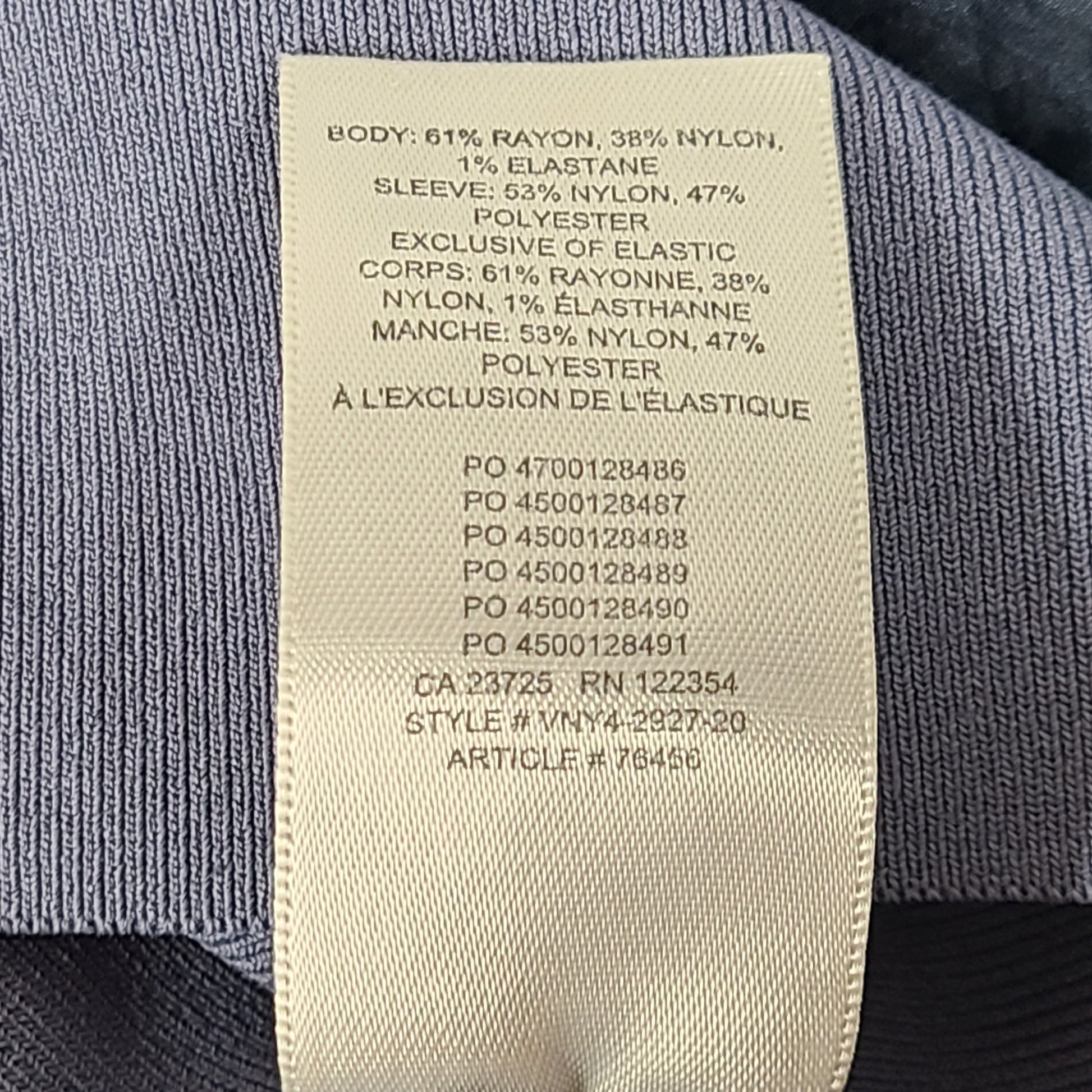 Materials: 61 Rayon% , 38% Nylon, 1% elastane.