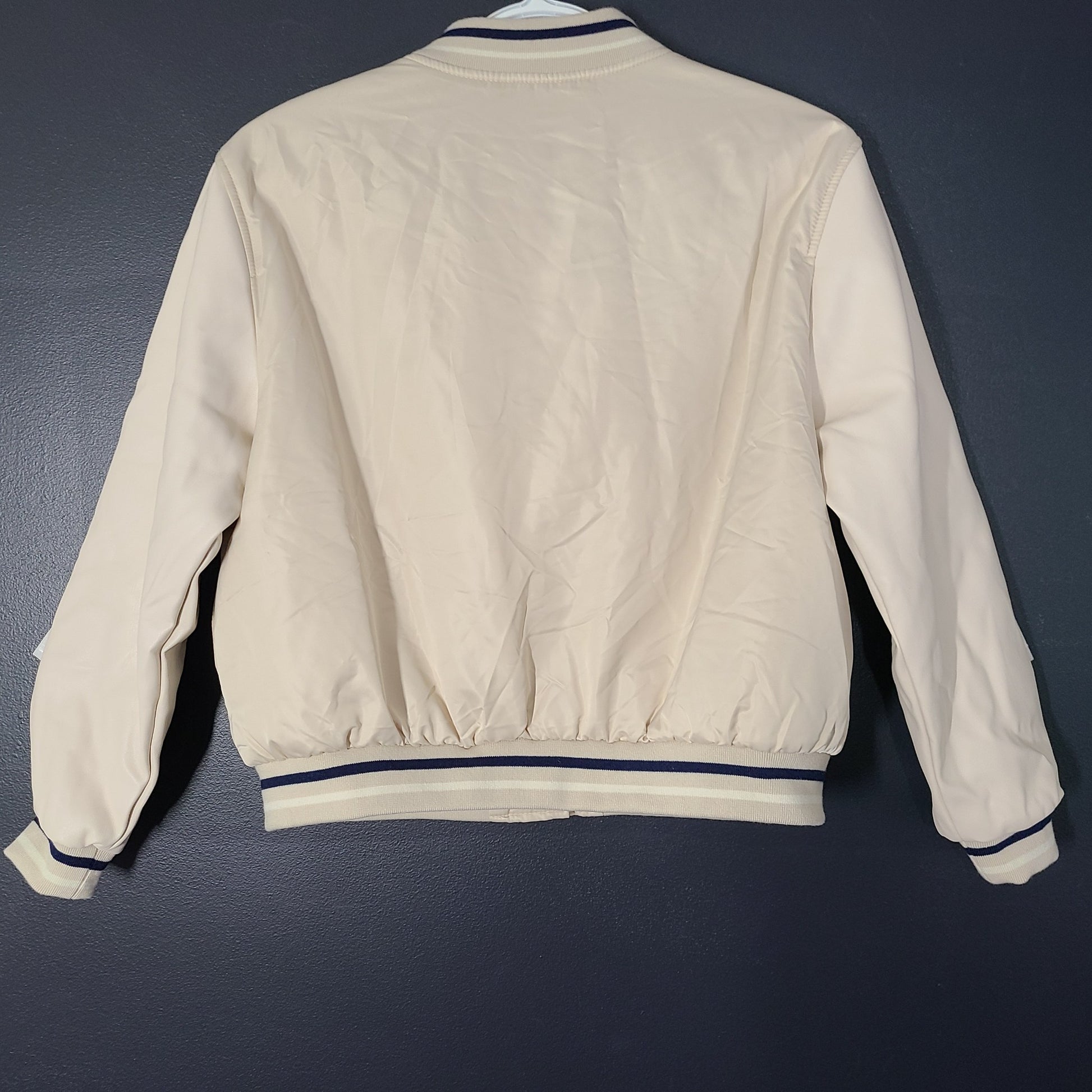 Zara Kids' Satin Bomber Jacket Varsity Faux Leather Sleeves Beige Sz 11-12
