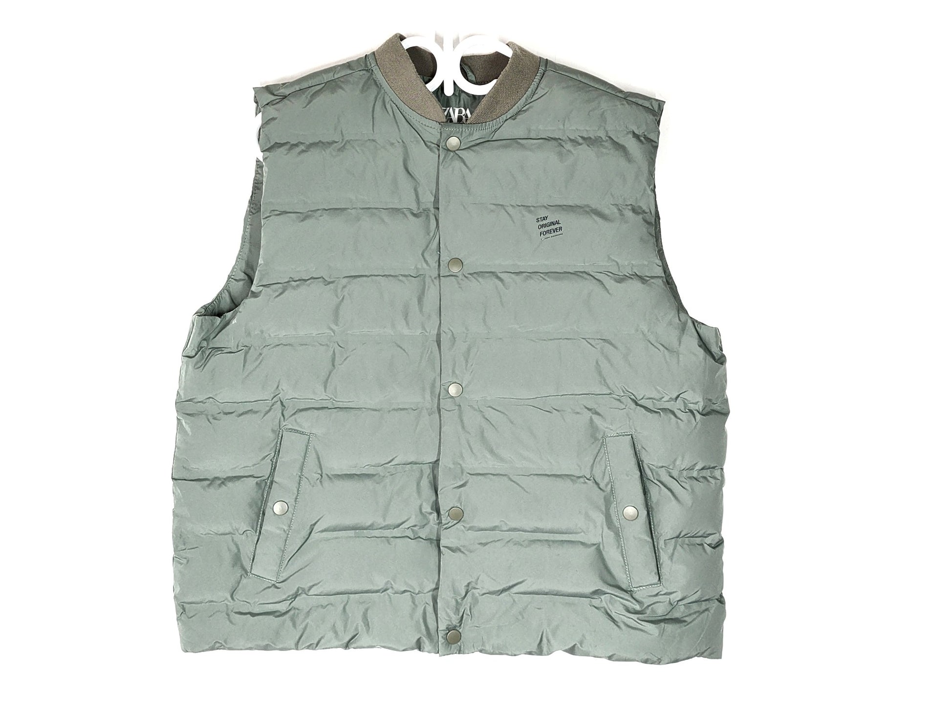 Zara Kids' Teens' Puffer Bomber Vest Light Khaki Green Sz 13-14 Yrs