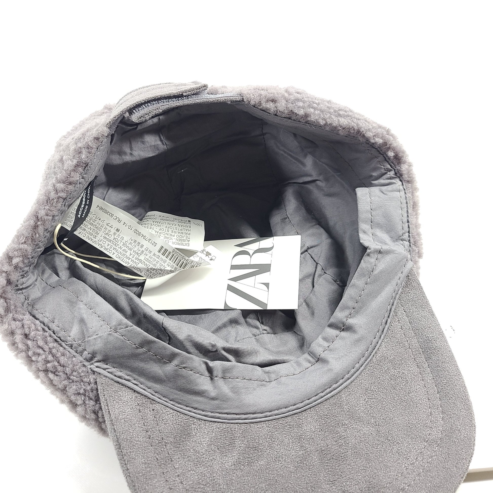Zara Kids' Youth Teddy Fleece Cap Grey 10-14 years Adjustable