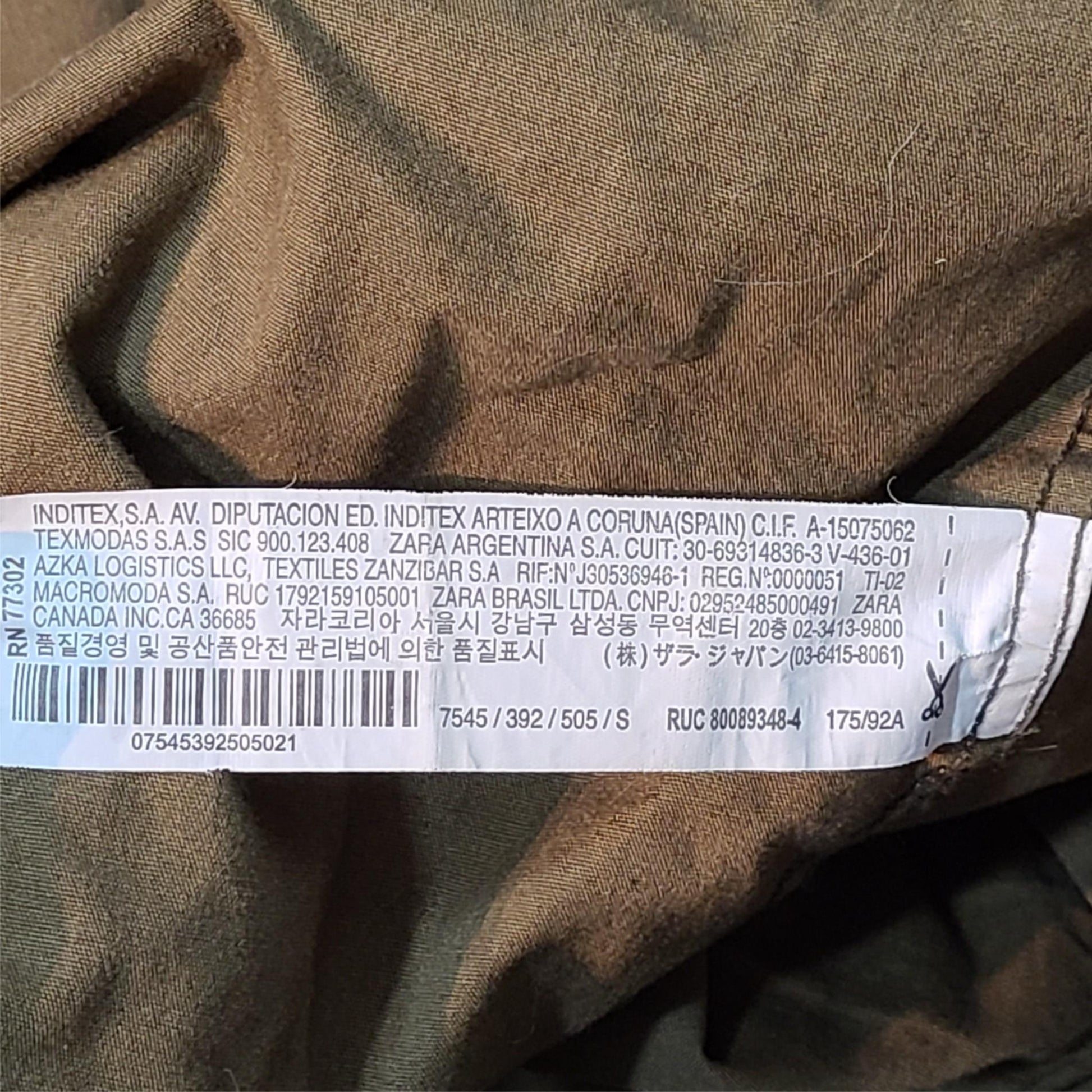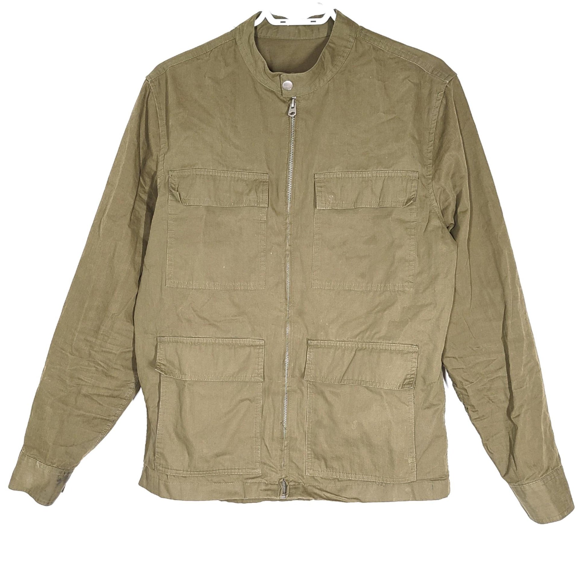 Zara Men's Casual Jacket Cotton Full Zip Olive Green 7545/392/505 Sz S