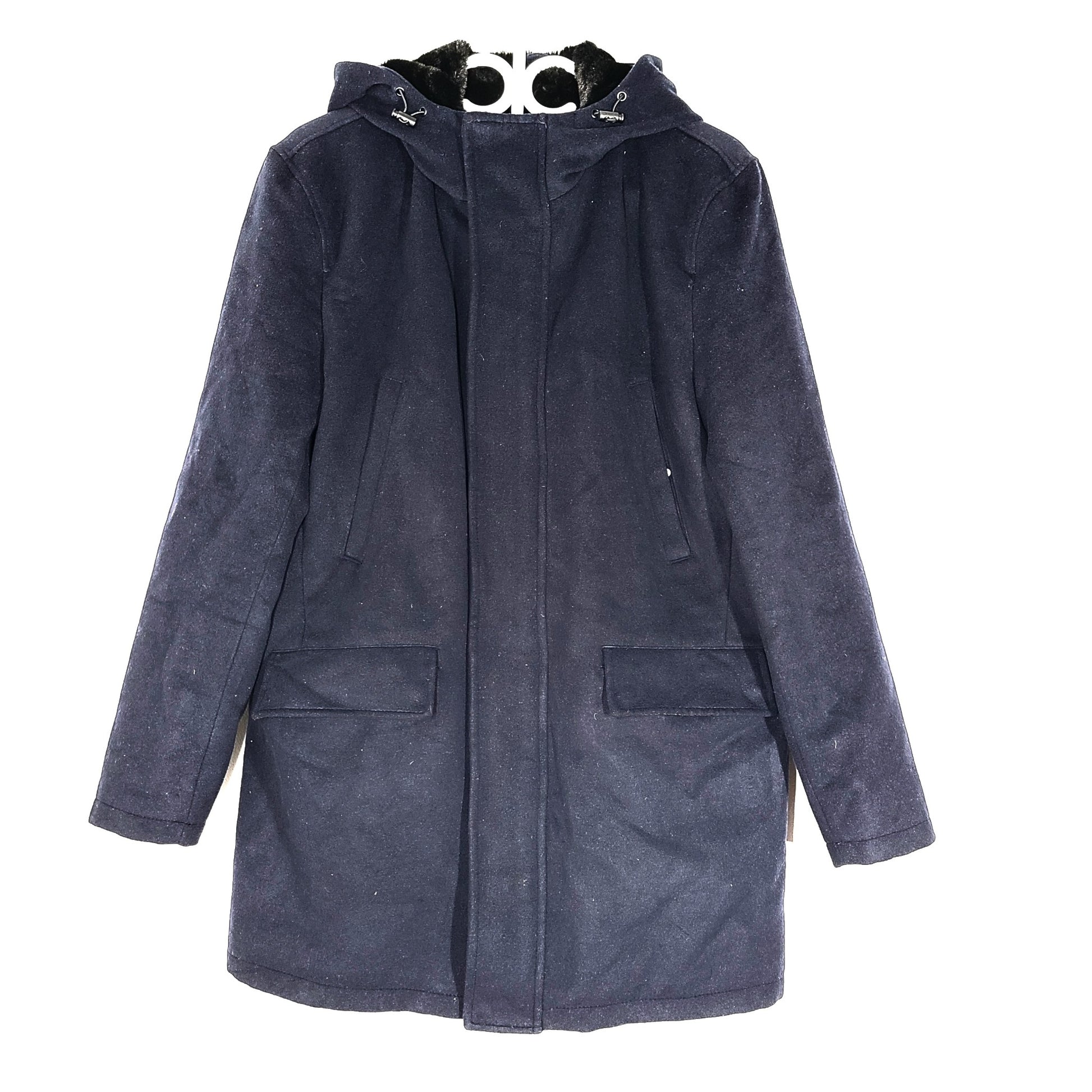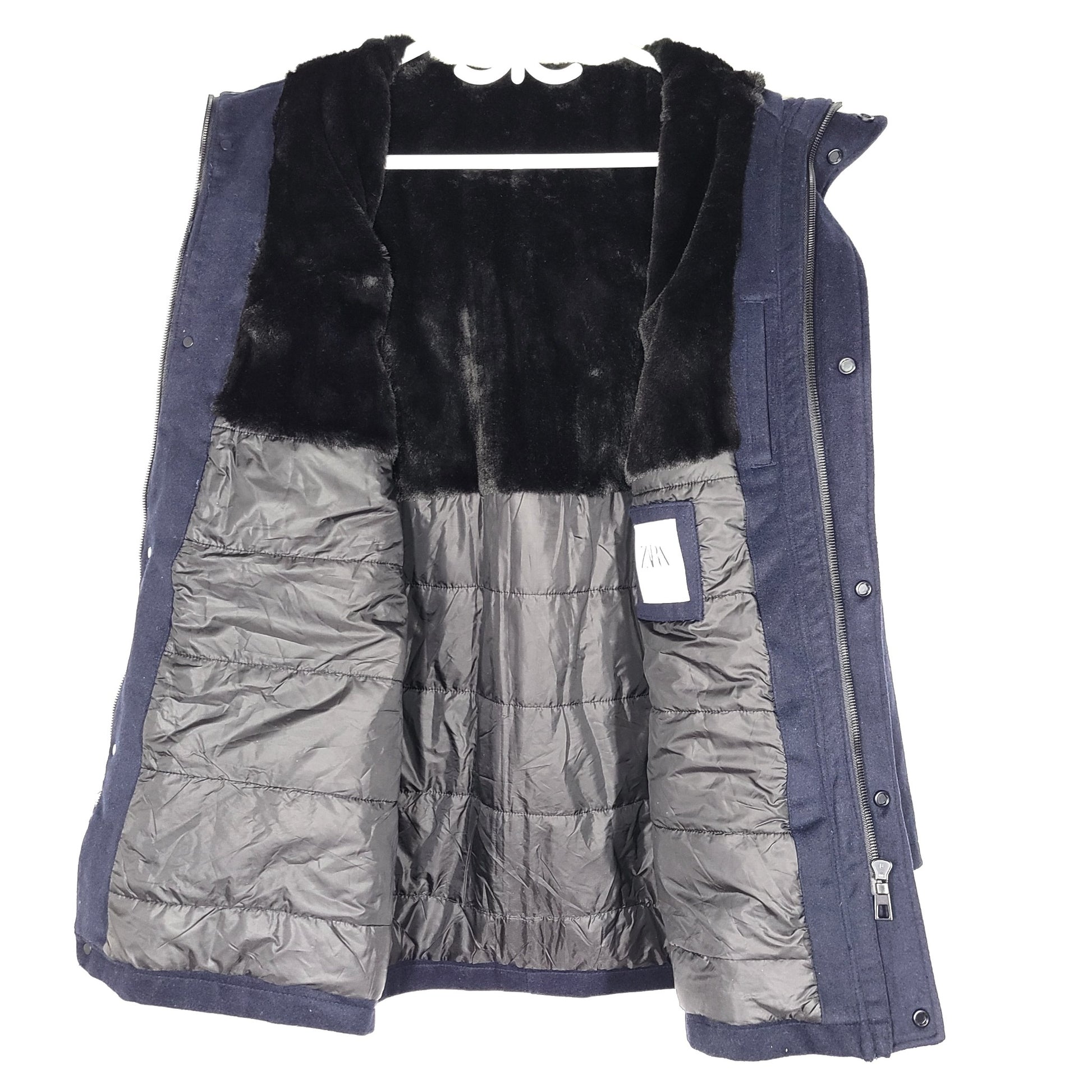 Zara Men's Fur Lined Insulated Overcoat Jacket Navy Blue Sz M