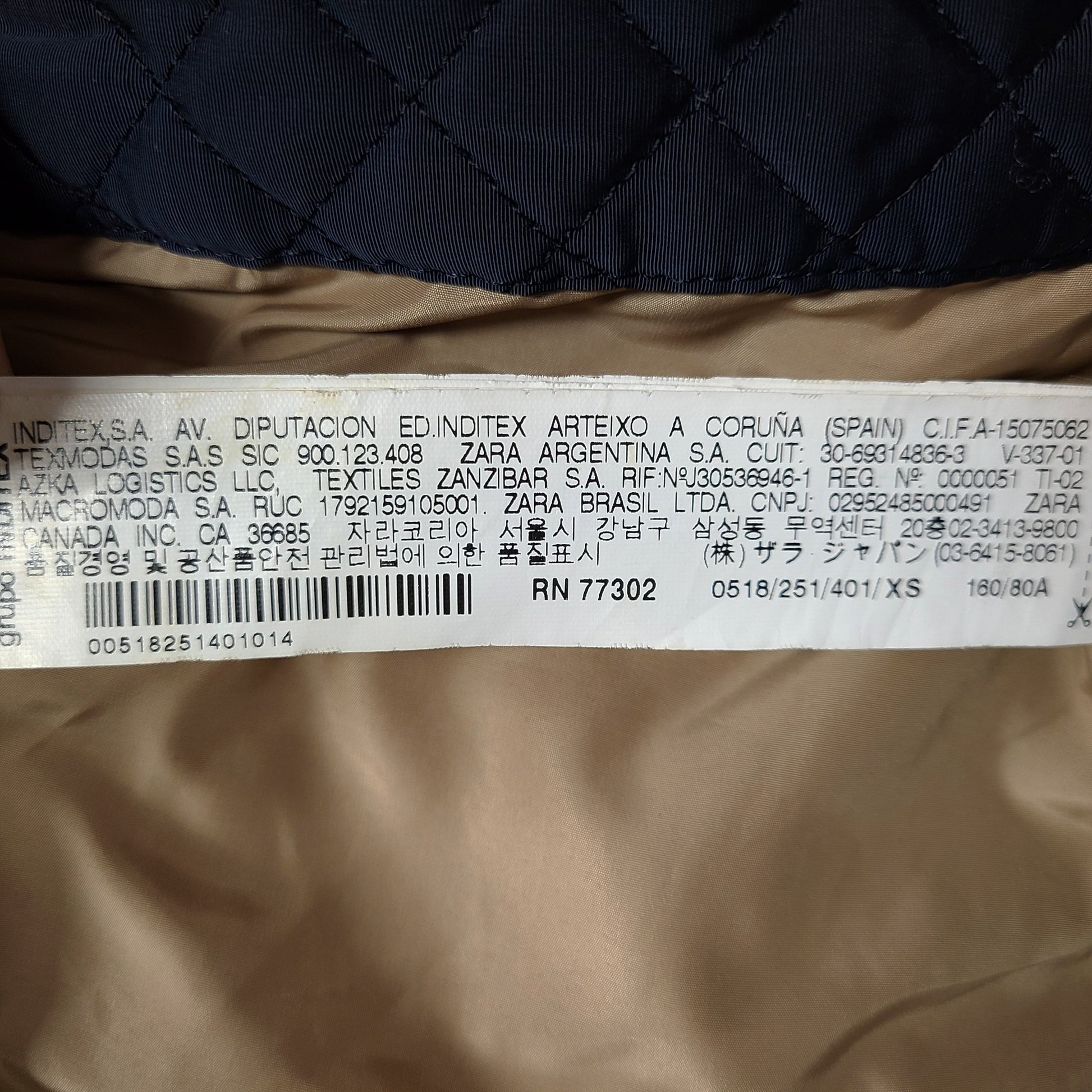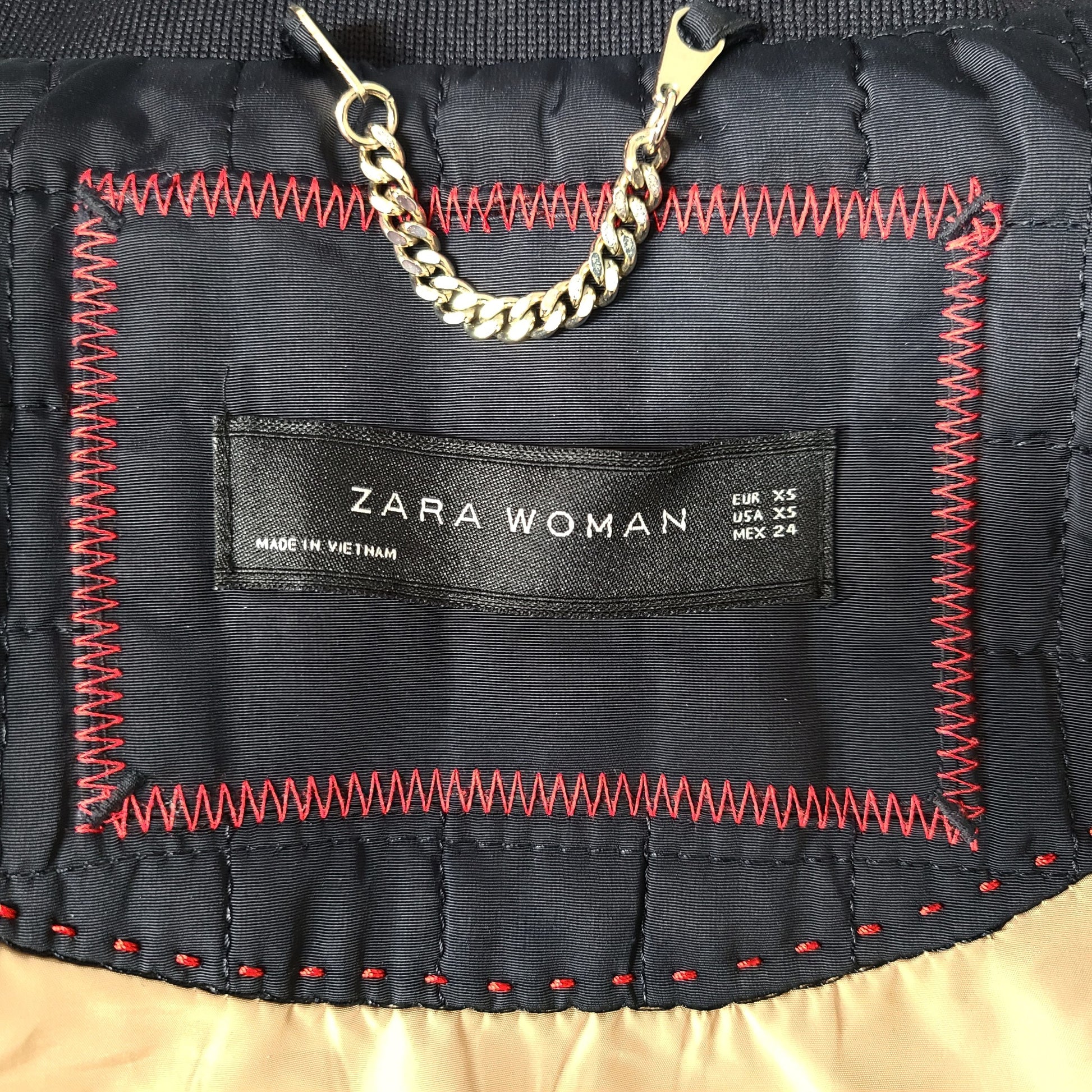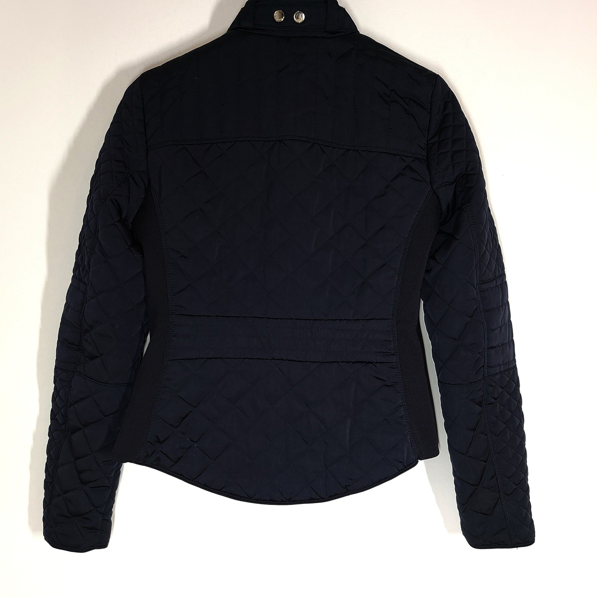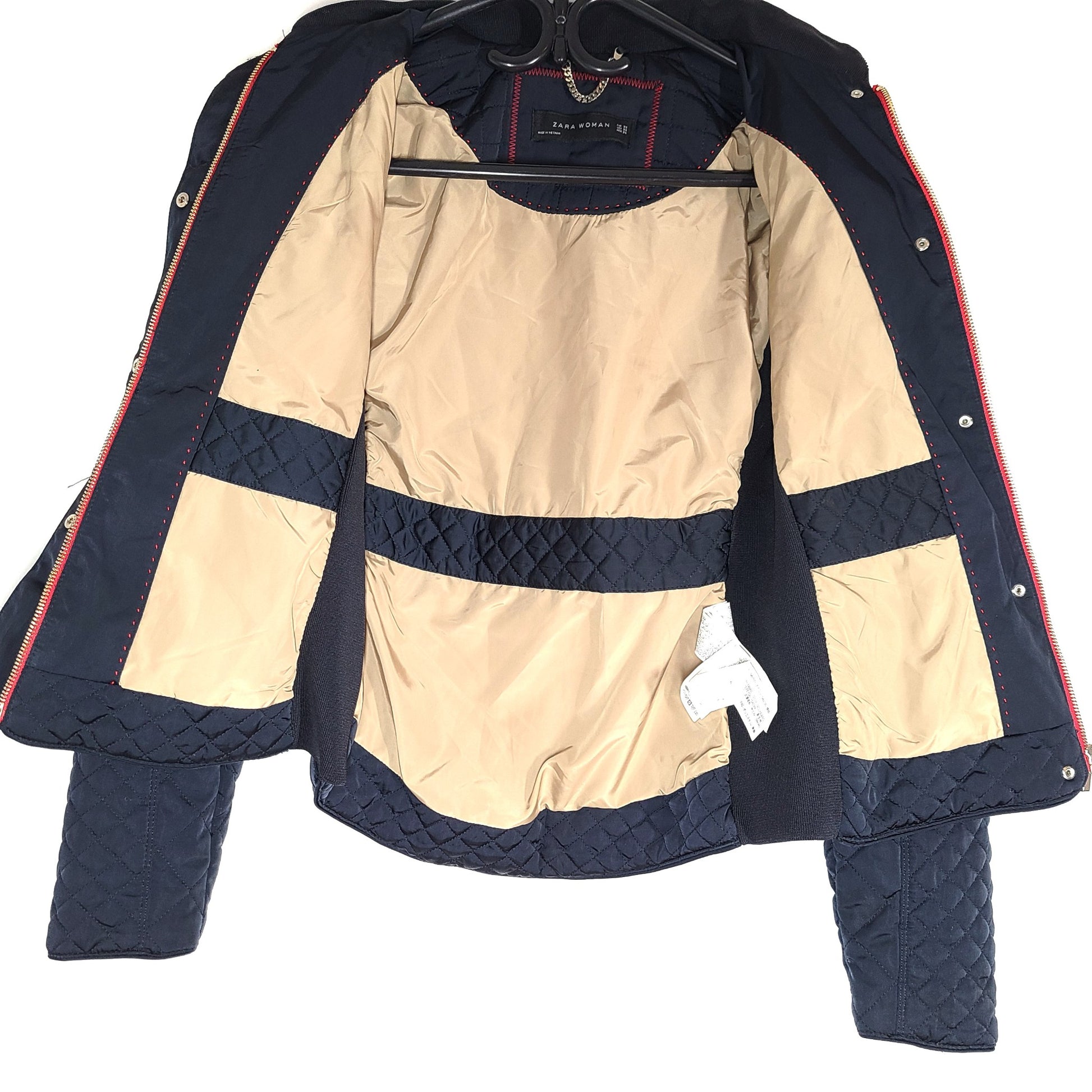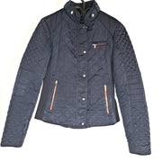Zara Woman Quilted Short Jacket Long Sleeve Stand Up Collar Navy Blue Sz XS