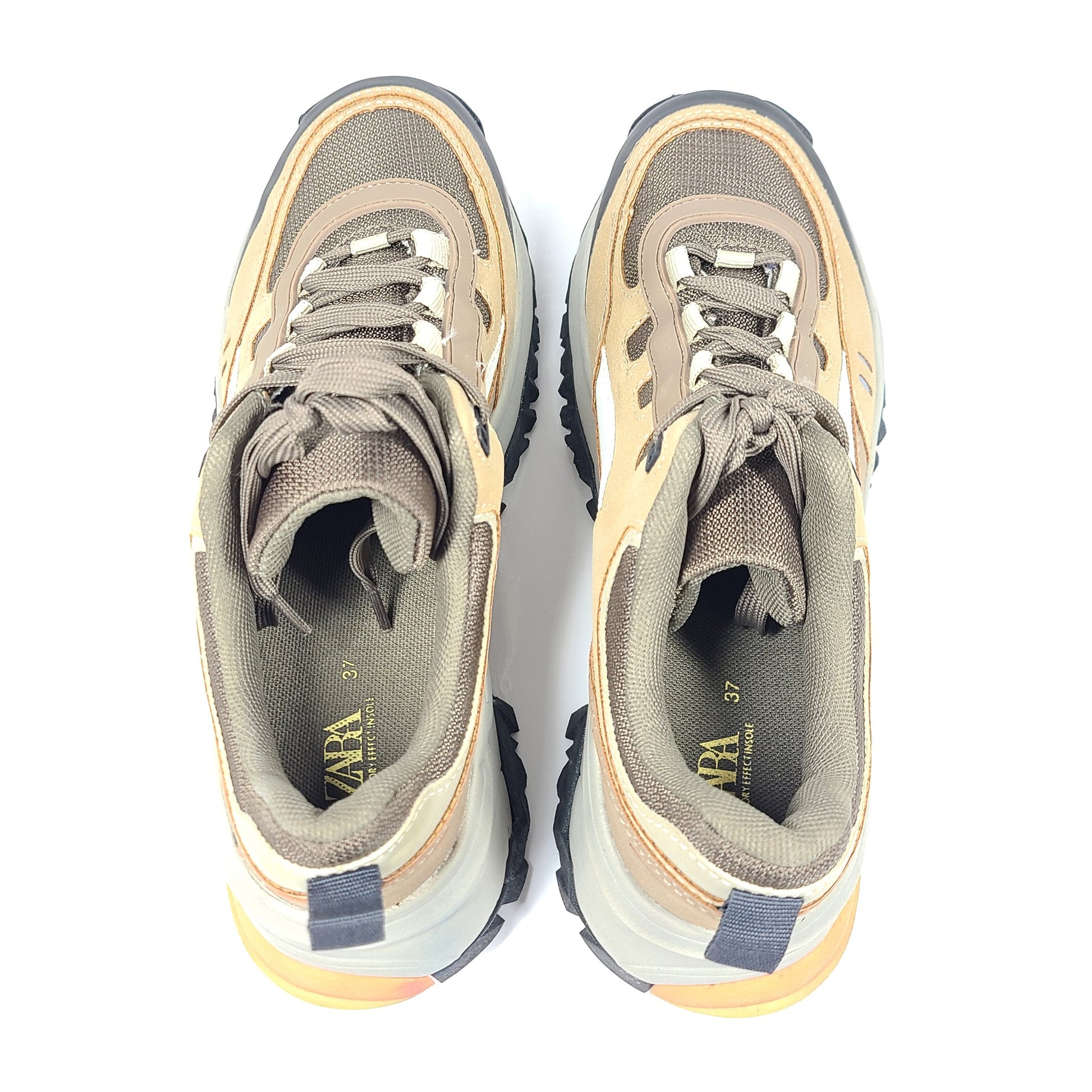 Zara Women's Platform Sneakers Memory Foam Comfort Tan/Beige Sz 6.5