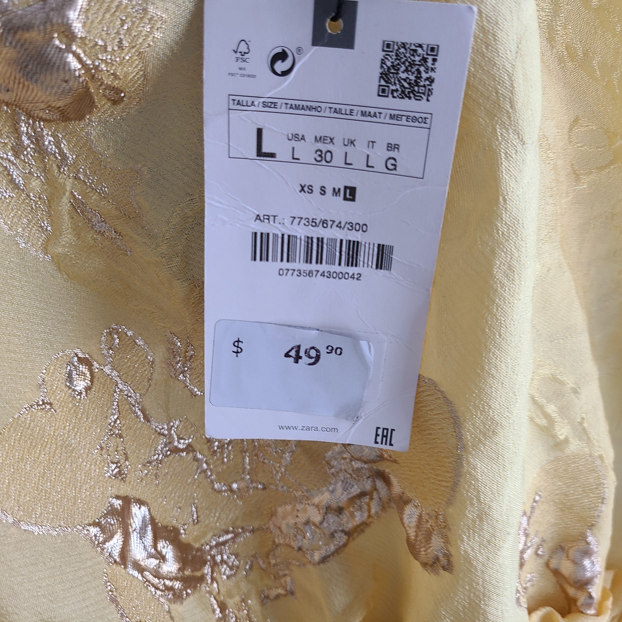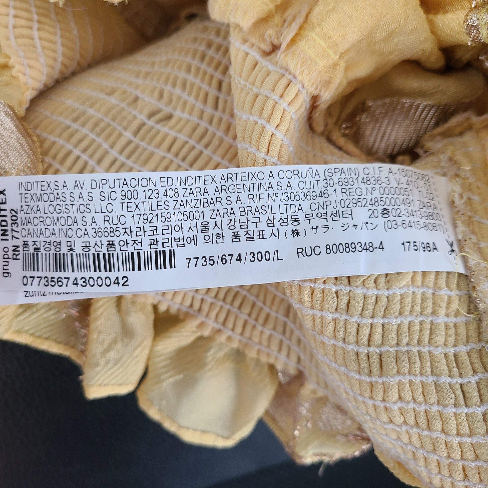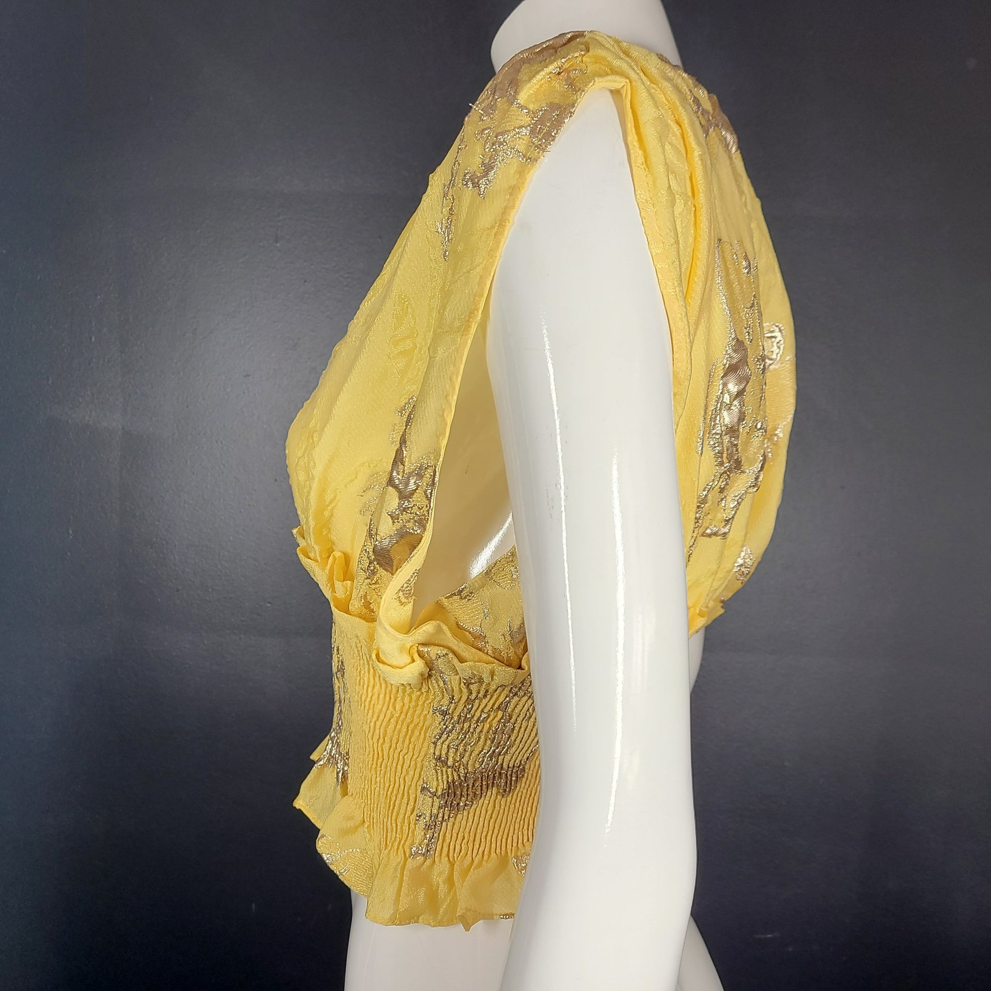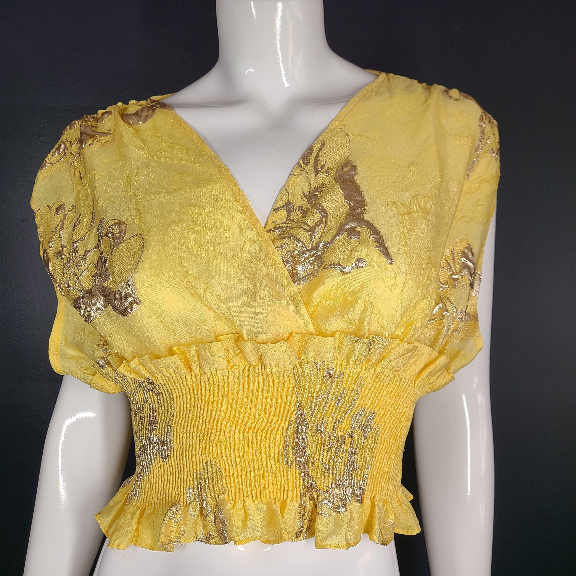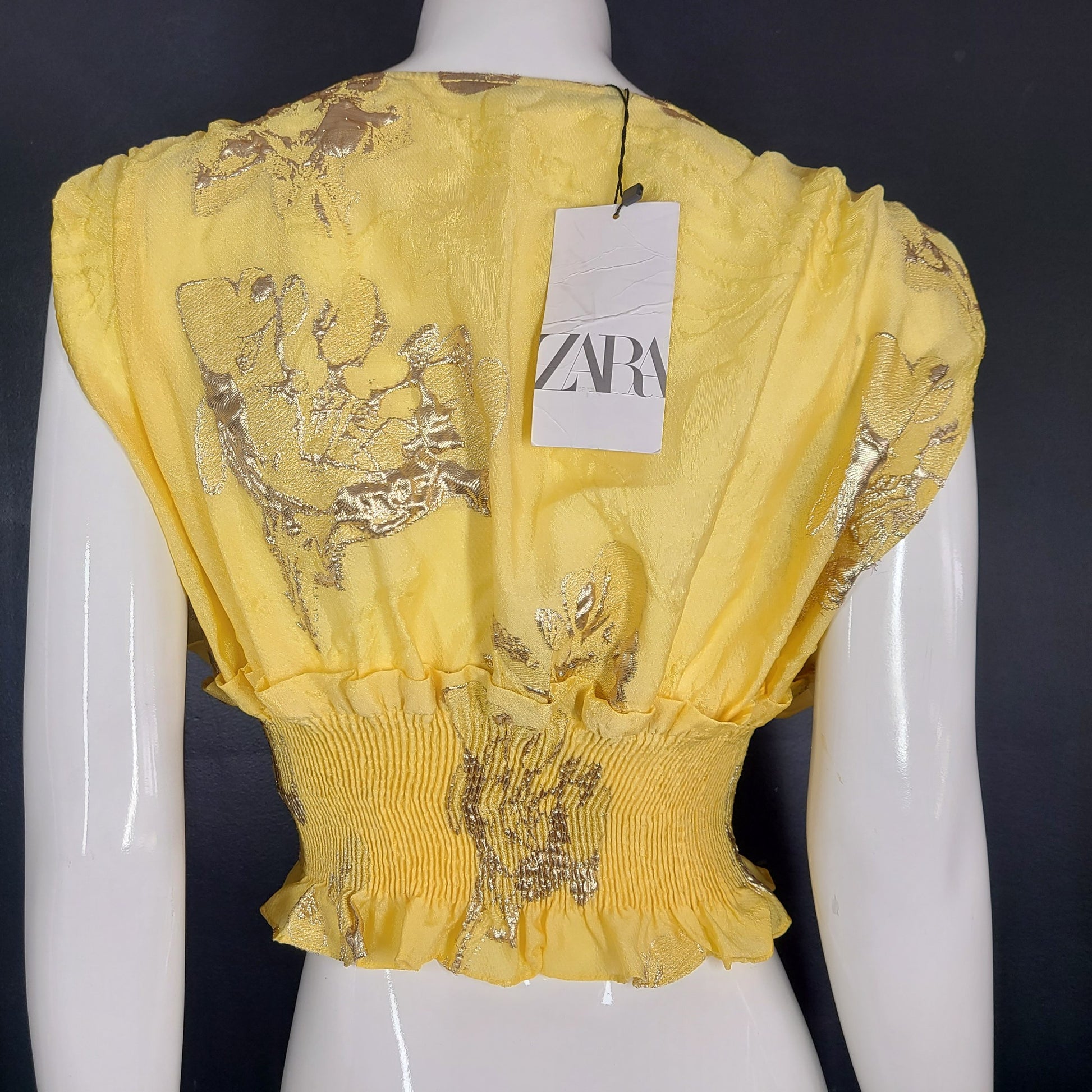 Zara Limited Edition Stretchy waist Crop Top with Ruffles Yellow and metallic abstract splashes.
