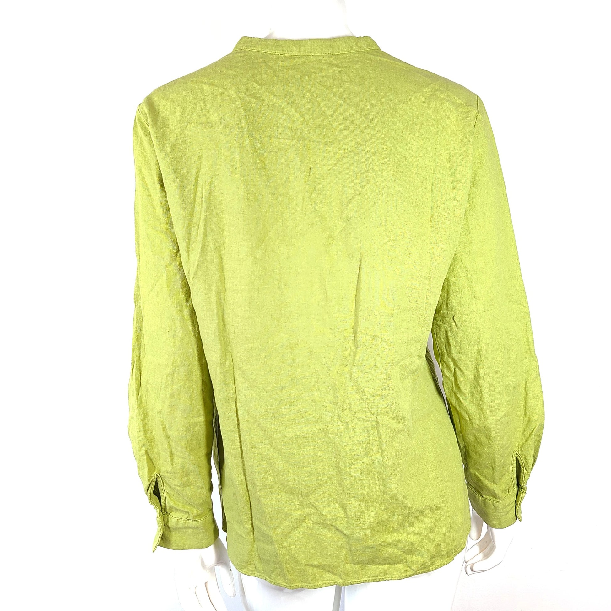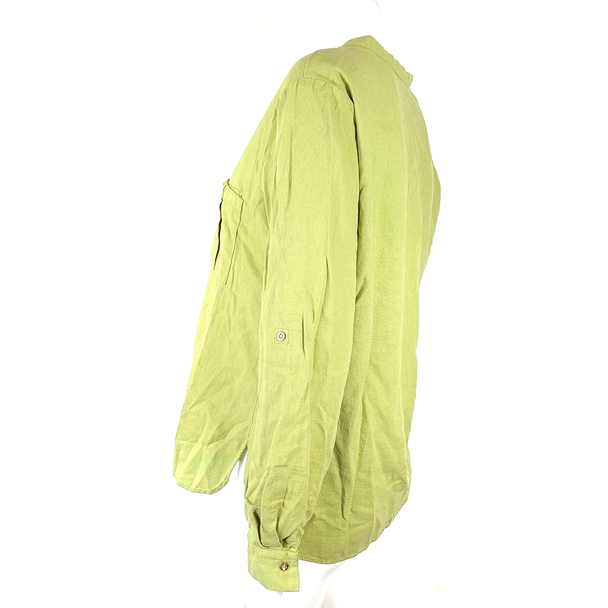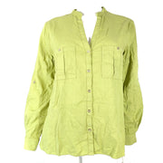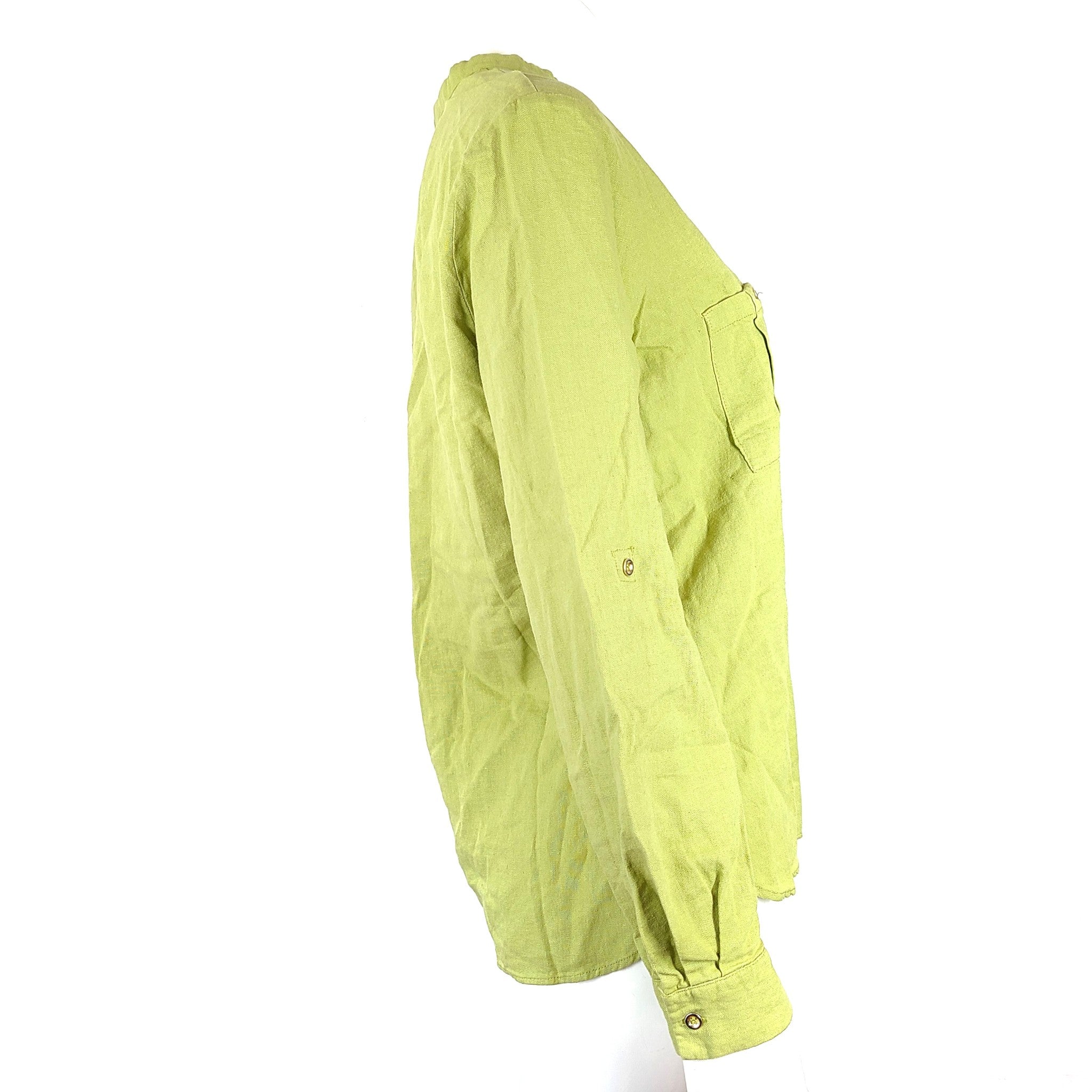 Zara Women's V-Neck Linen Blend Button Up Shirt Green Sz L NWT